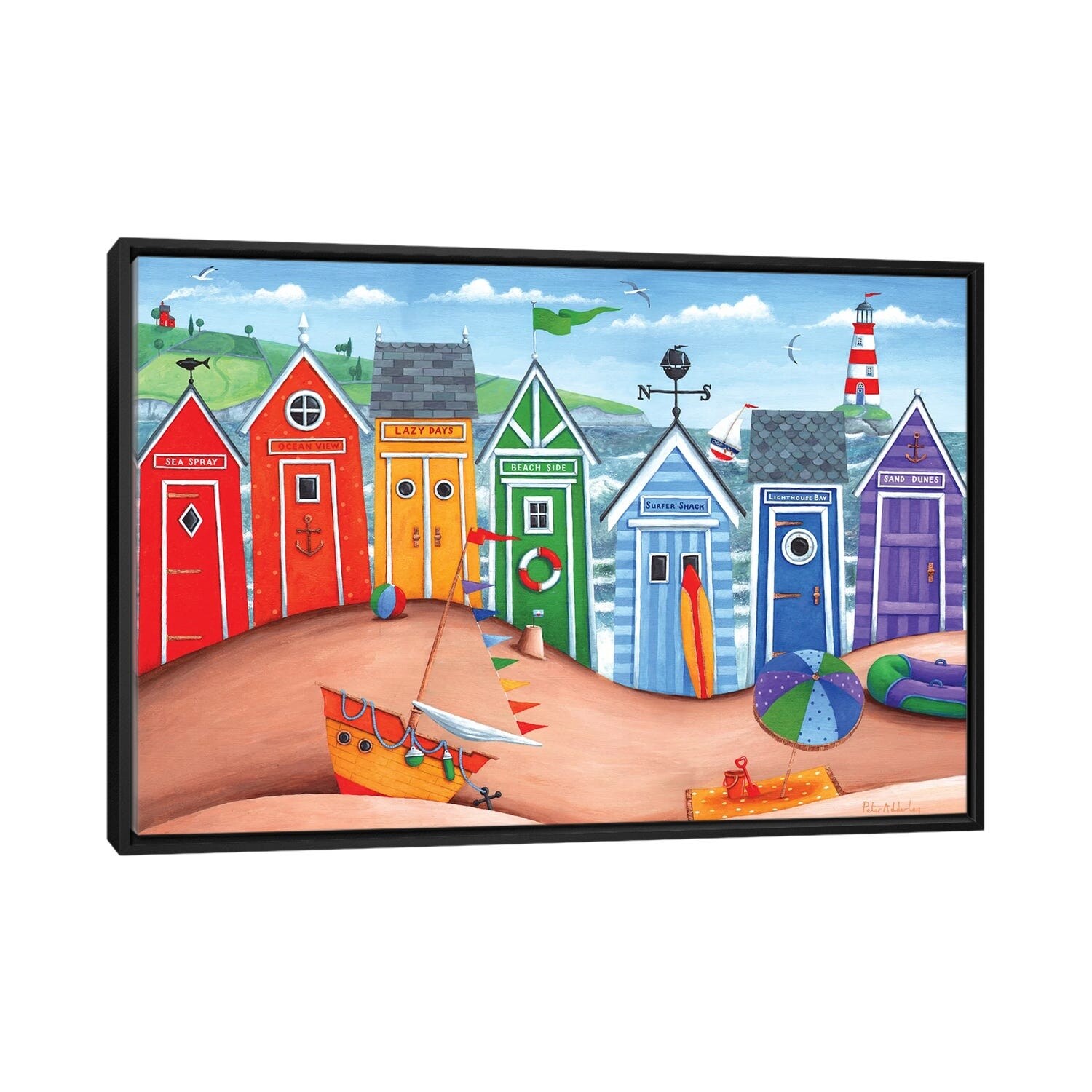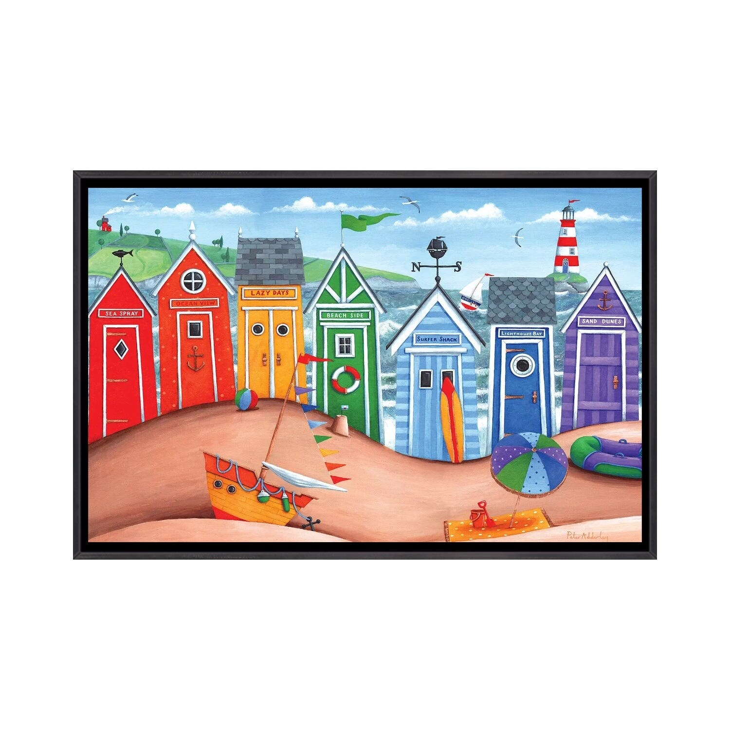 iCanvas "Beach Hut Rainbow Scene" by Peter Adderley Framed Canvas Print