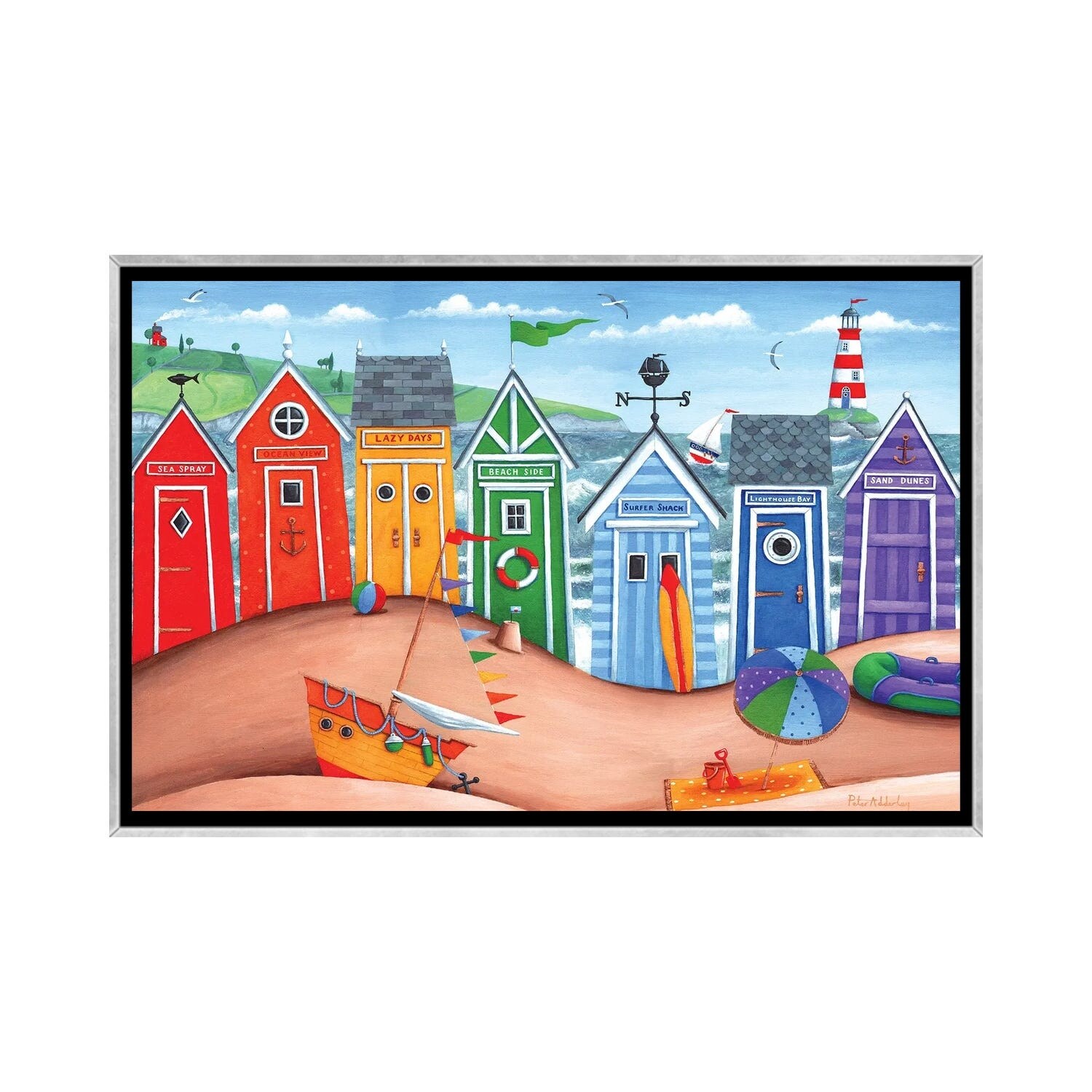 iCanvas "Beach Hut Rainbow Scene" by Peter Adderley Framed