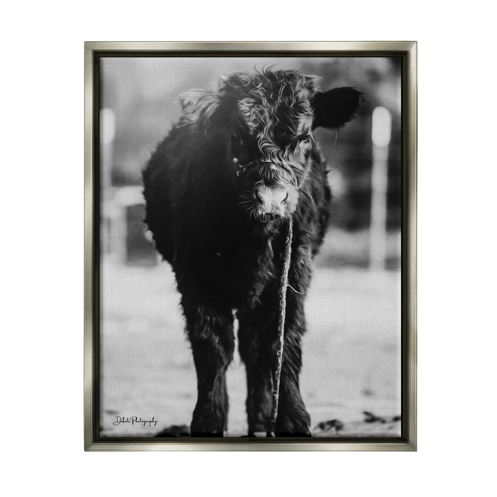 Stupell Industries Bold Country Cattle Black White Photography Wild Animal Floater Frame