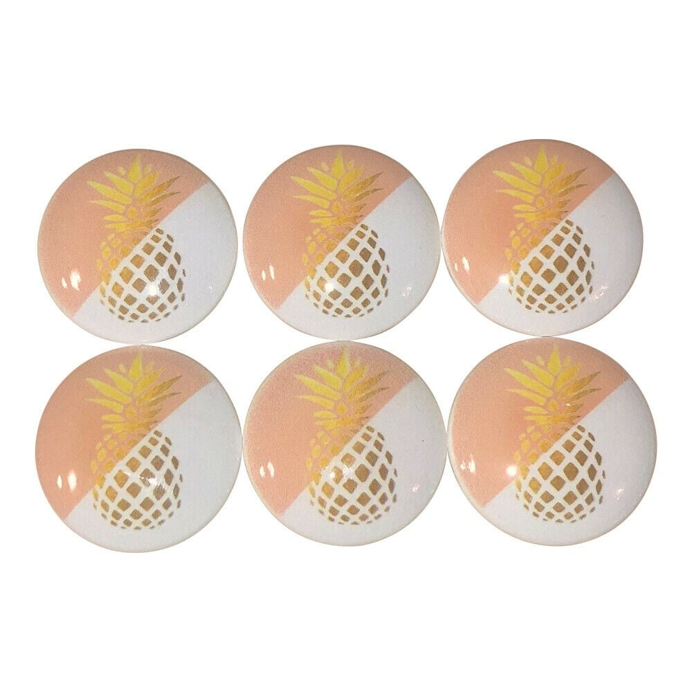 Set of 6 Pineapple Wood Cabinet Knobs - 1.5" Wide