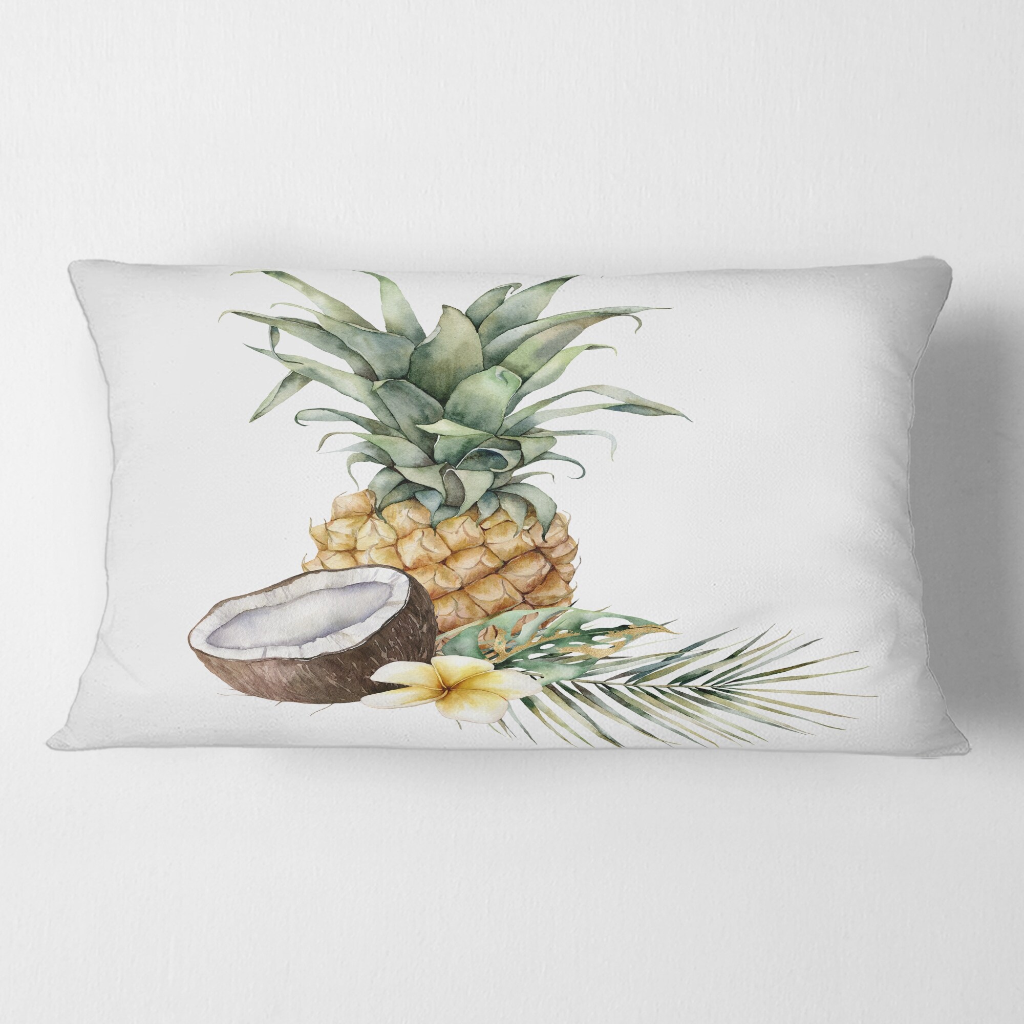 Designart 'Pineapple With Coconut Plumeria and Palm Leaves' Traditional Printed Throw Pillow