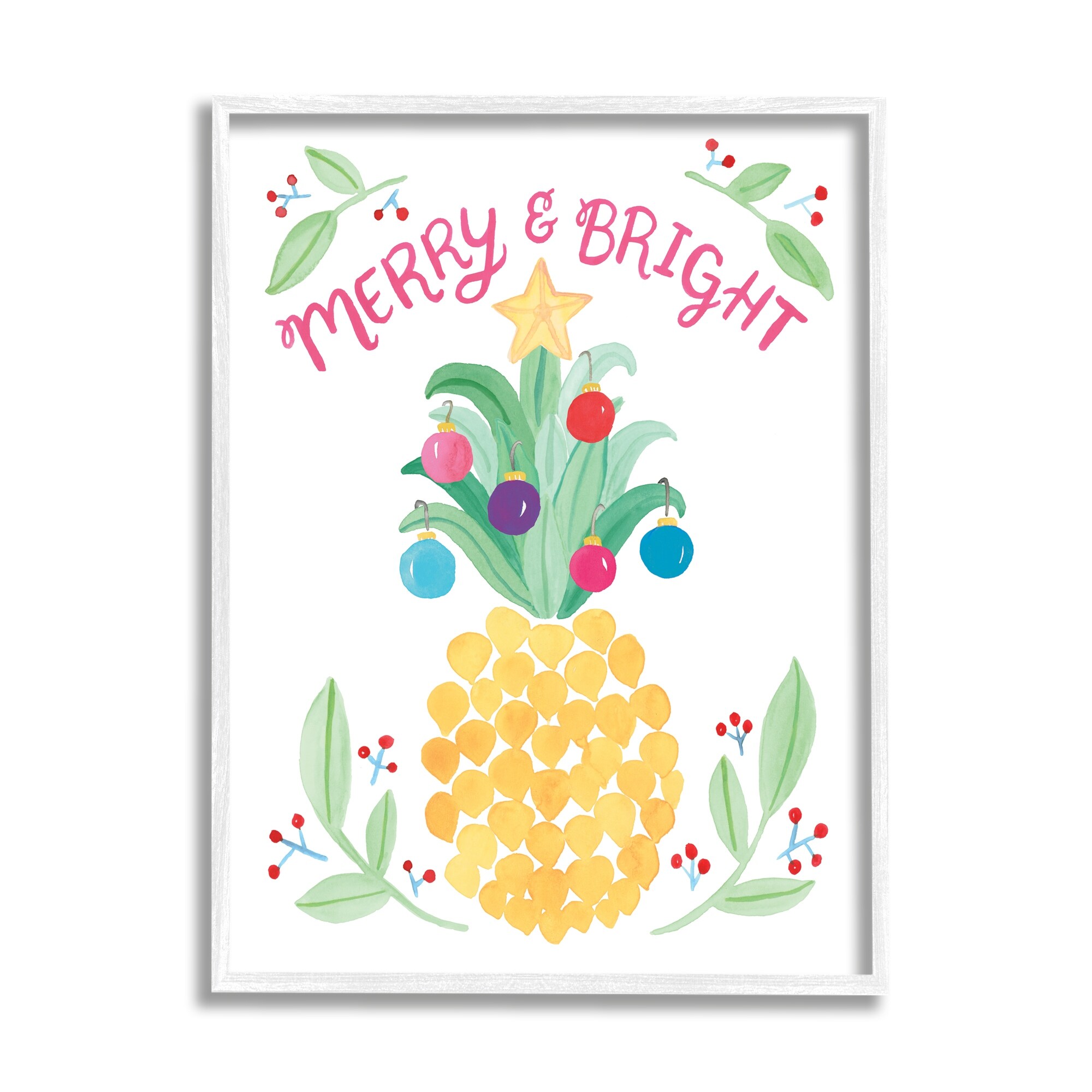 Stupell Industries Merry & Bright Ornamental Pineapple Watercolor Detail Framed Wall Art - Multi-Color