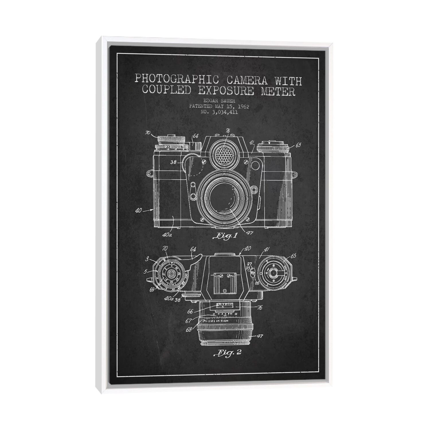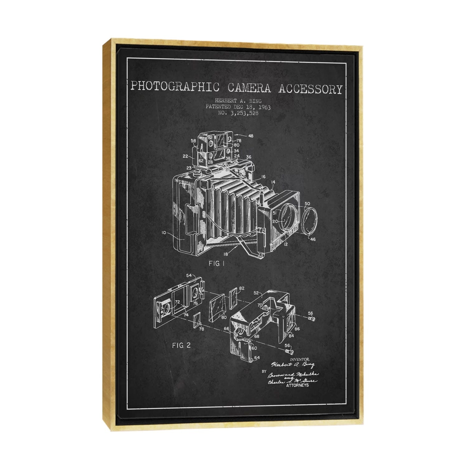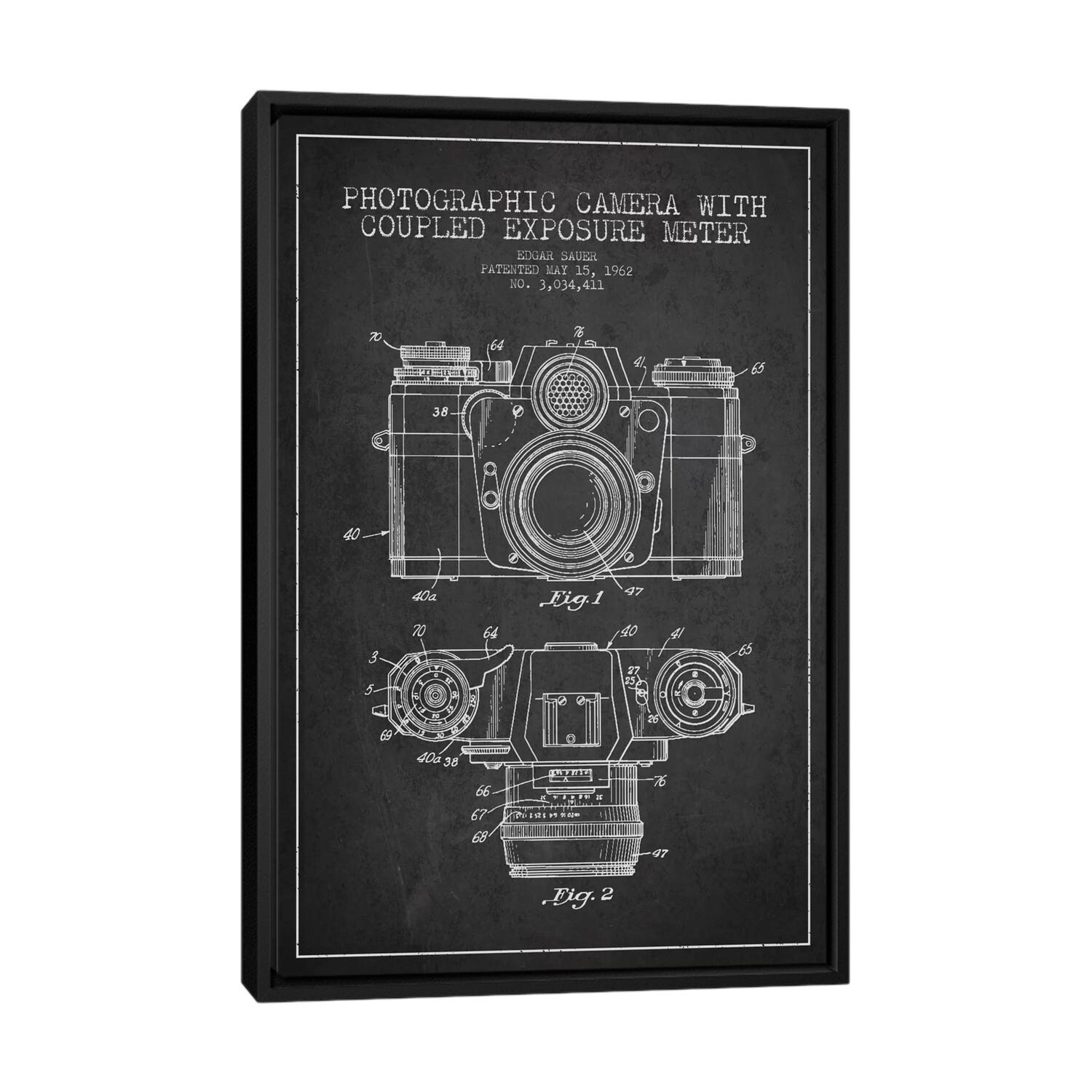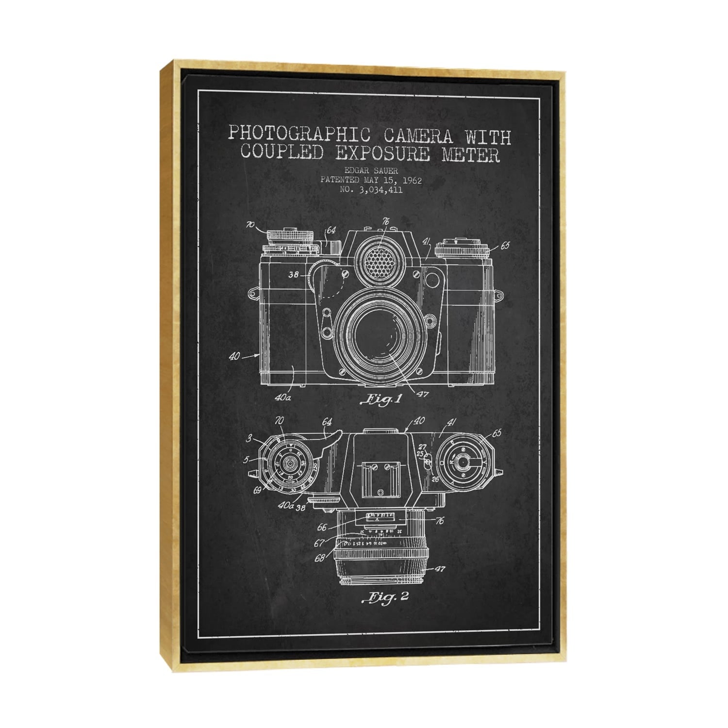 iCanvas "Camera Charcoal Patent Blueprint" by Aged Pixel Framed