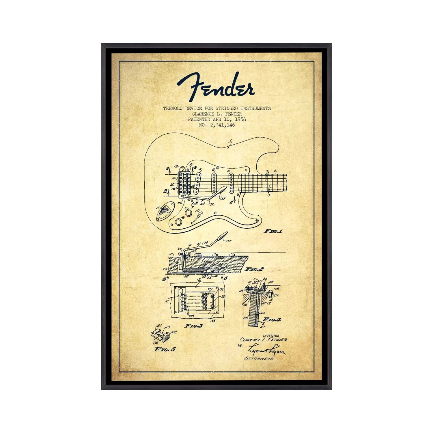 iCanvas "Tremolo Vintage Patent Blueprint" by Aged Pixel Framed