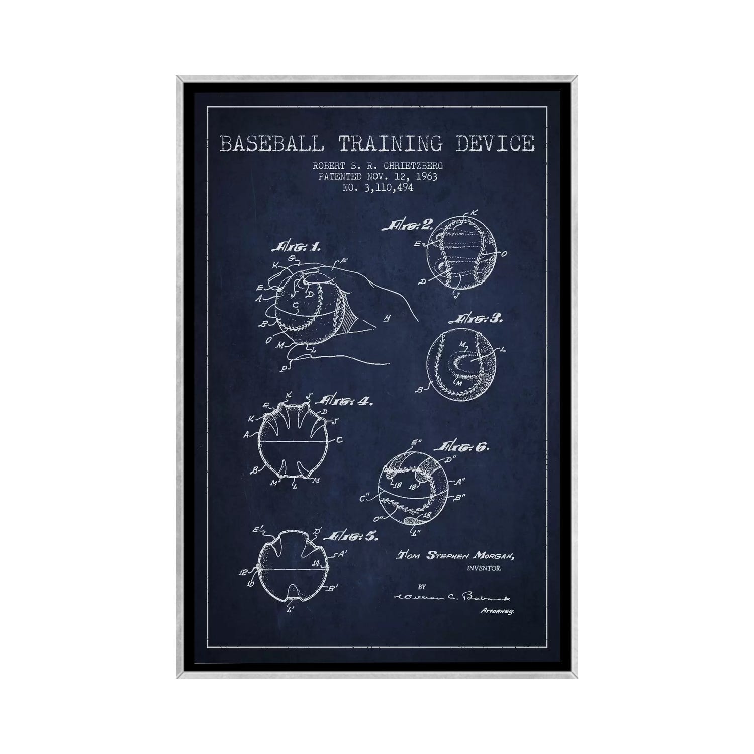 iCanvas "Baseball Device Navy Blue Patent Blueprint" by Aged Pixel Framed