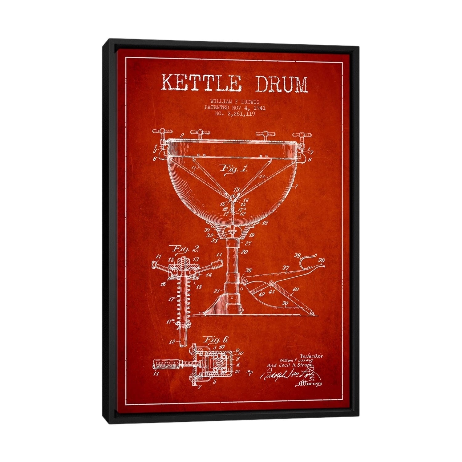 iCanvas "Ludwig Kettle Red Patent Blueprint" by Aged Pixel Framed Canvas Print