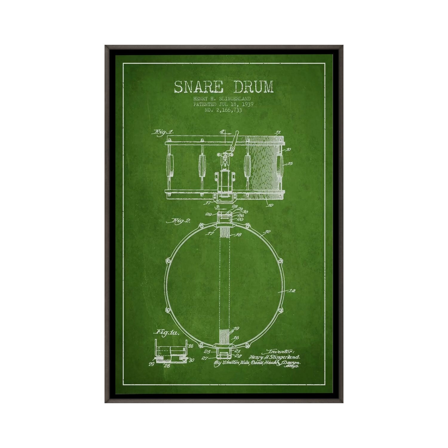 iCanvas "Drum Green Patent Blueprint" by Aged Pixel Framed