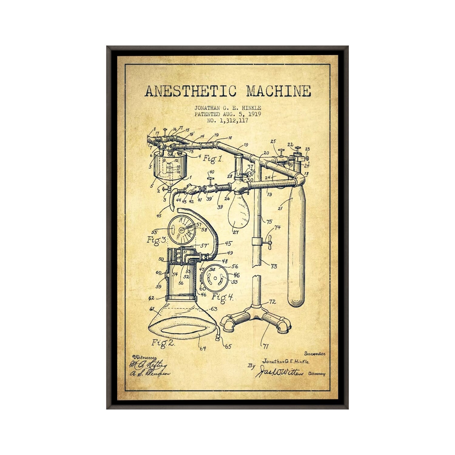iCanvas "Anesthetic Machine Vintage Patent Blueprint" by Aged Pixel Framed