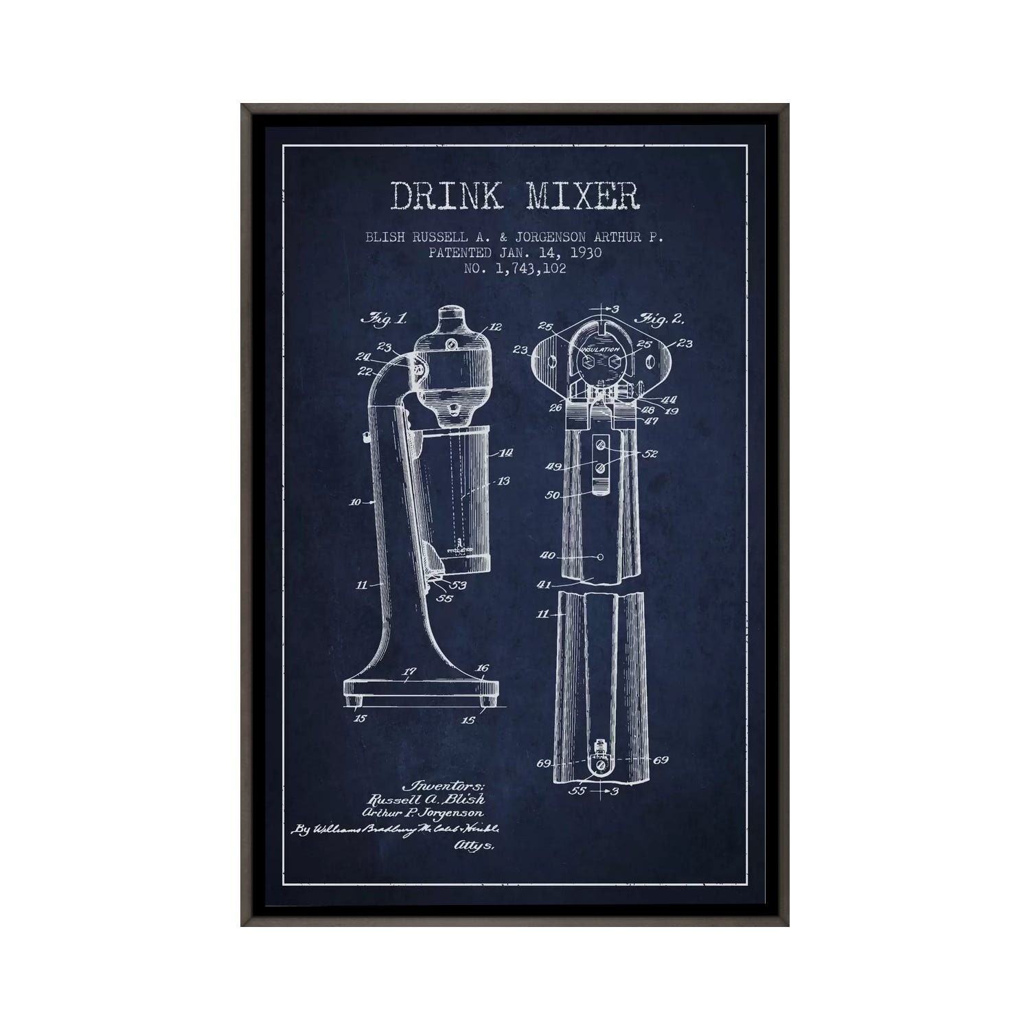 iCanvas "Drink Mixer Navy Blue Patent Blueprint" by Aged Pixel Framed Canvas Print