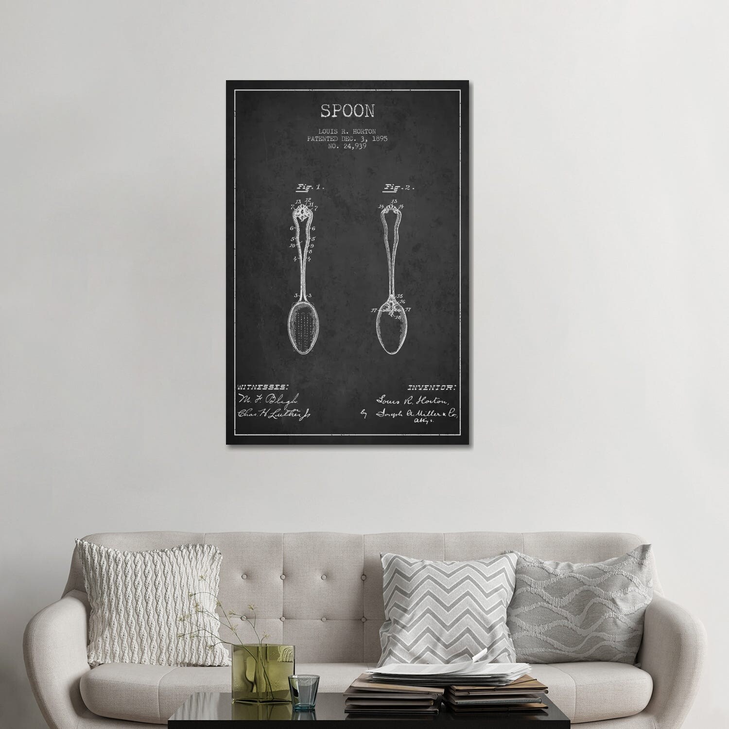 iCanvas "Spoon Charcoal Patent Blueprint" by Aged Pixel Canvas Print