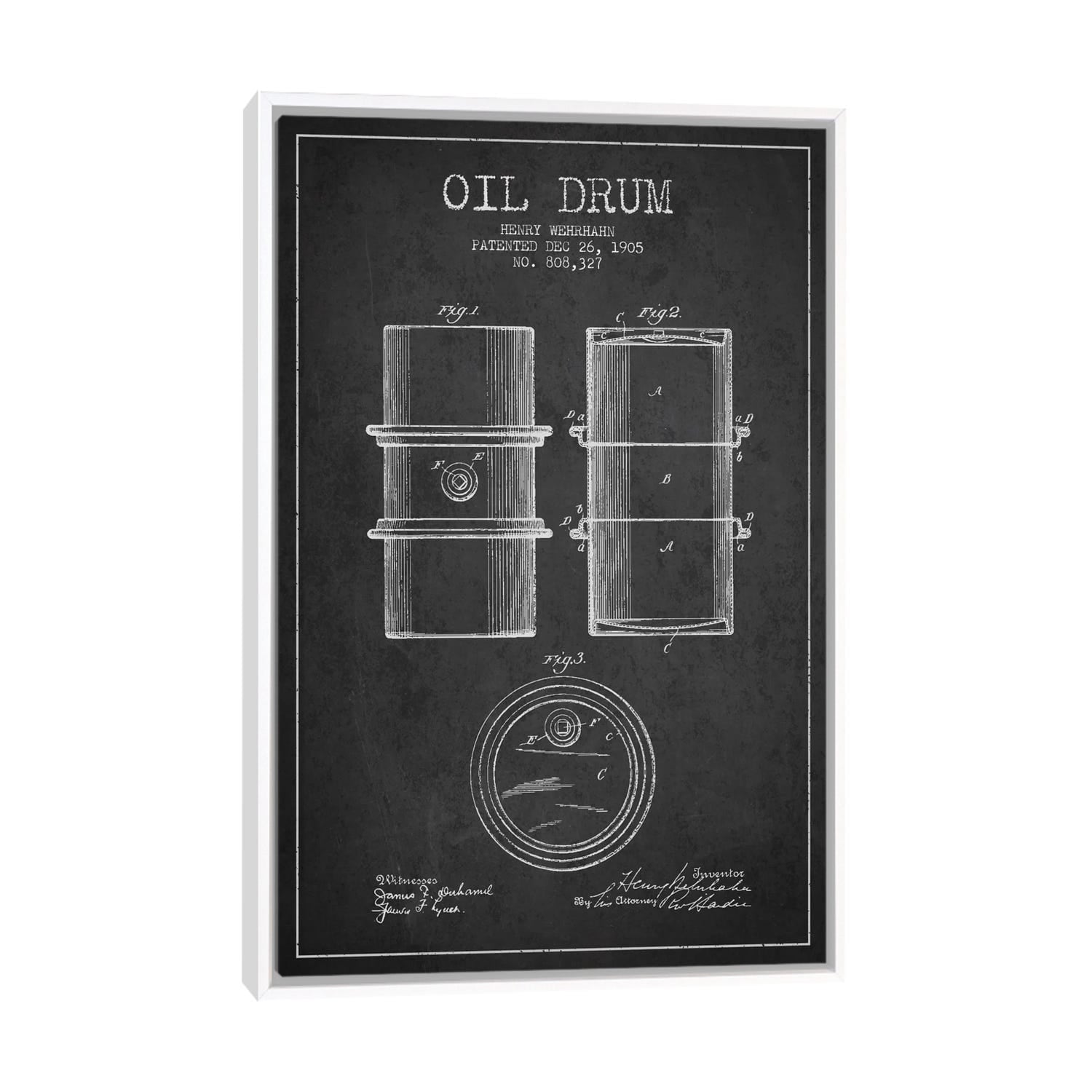 iCanvas "Oil Drum Charcoal Patent Blueprint" by Aged Pixel Framed Canvas Print