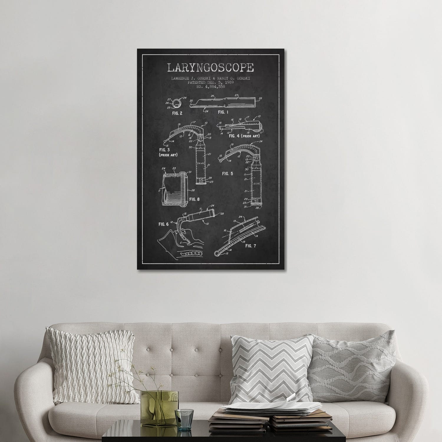 iCanvas "Laryngoscope Charcoal Patent Blueprint" by Aged Pixel Canvas Print
