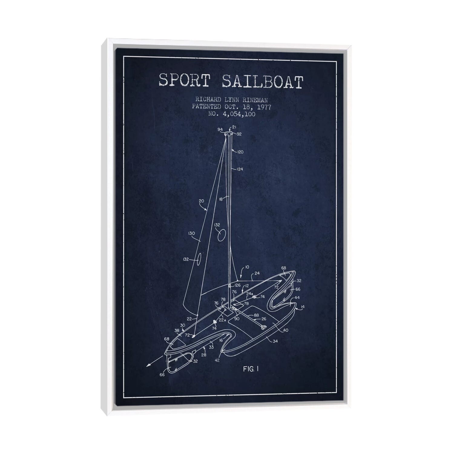iCanvas "Sport Sailboat 1 Navy Blue Patent Blueprint" by Aged Pixel Framed Canvas Print