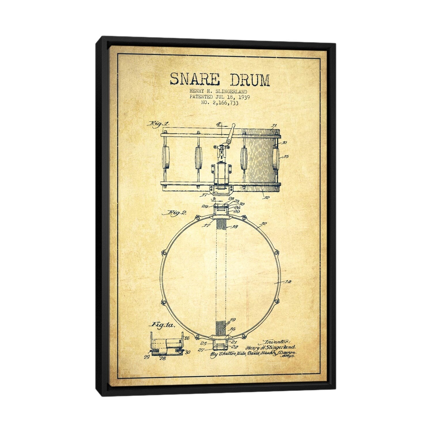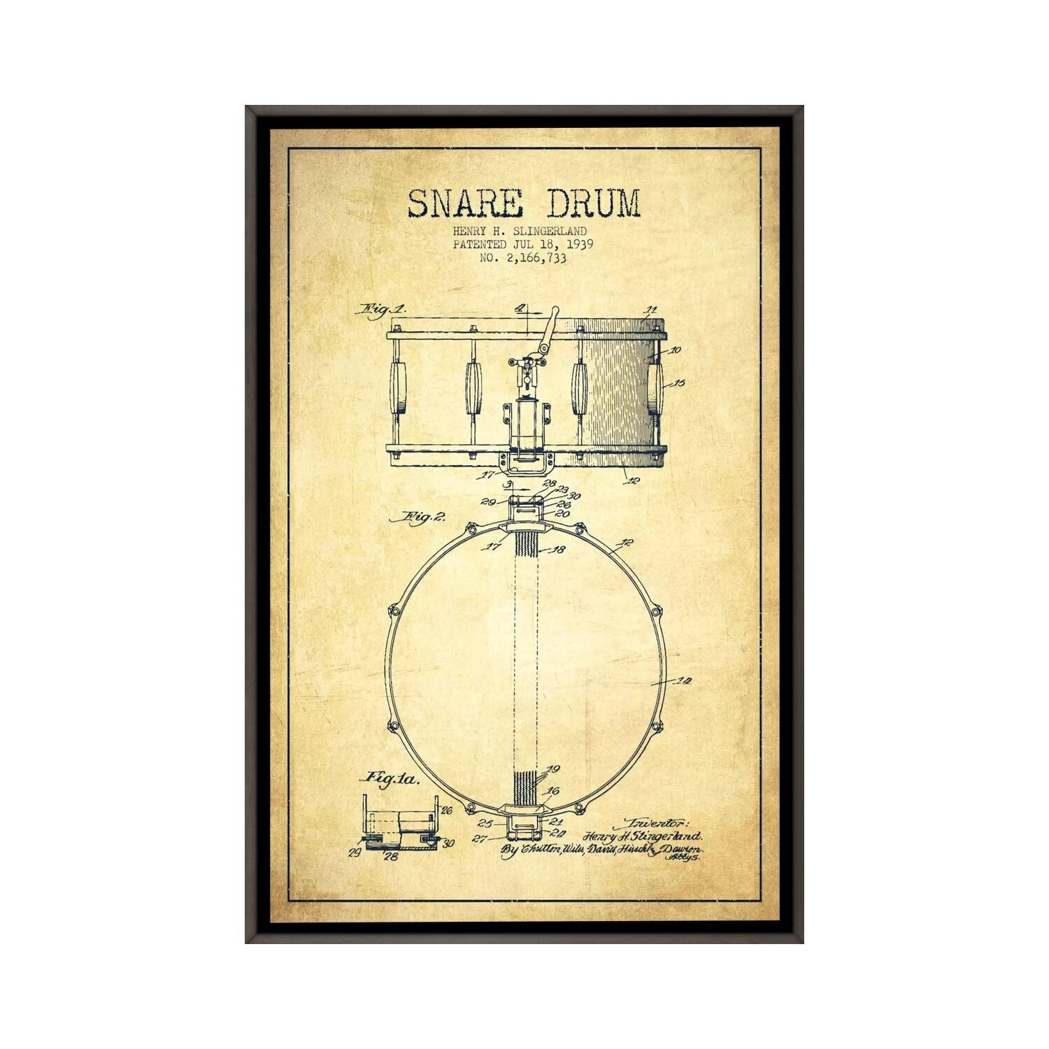 iCanvas "Drum Vintage Patent Blueprint" by Aged Pixel Framed Canvas Print