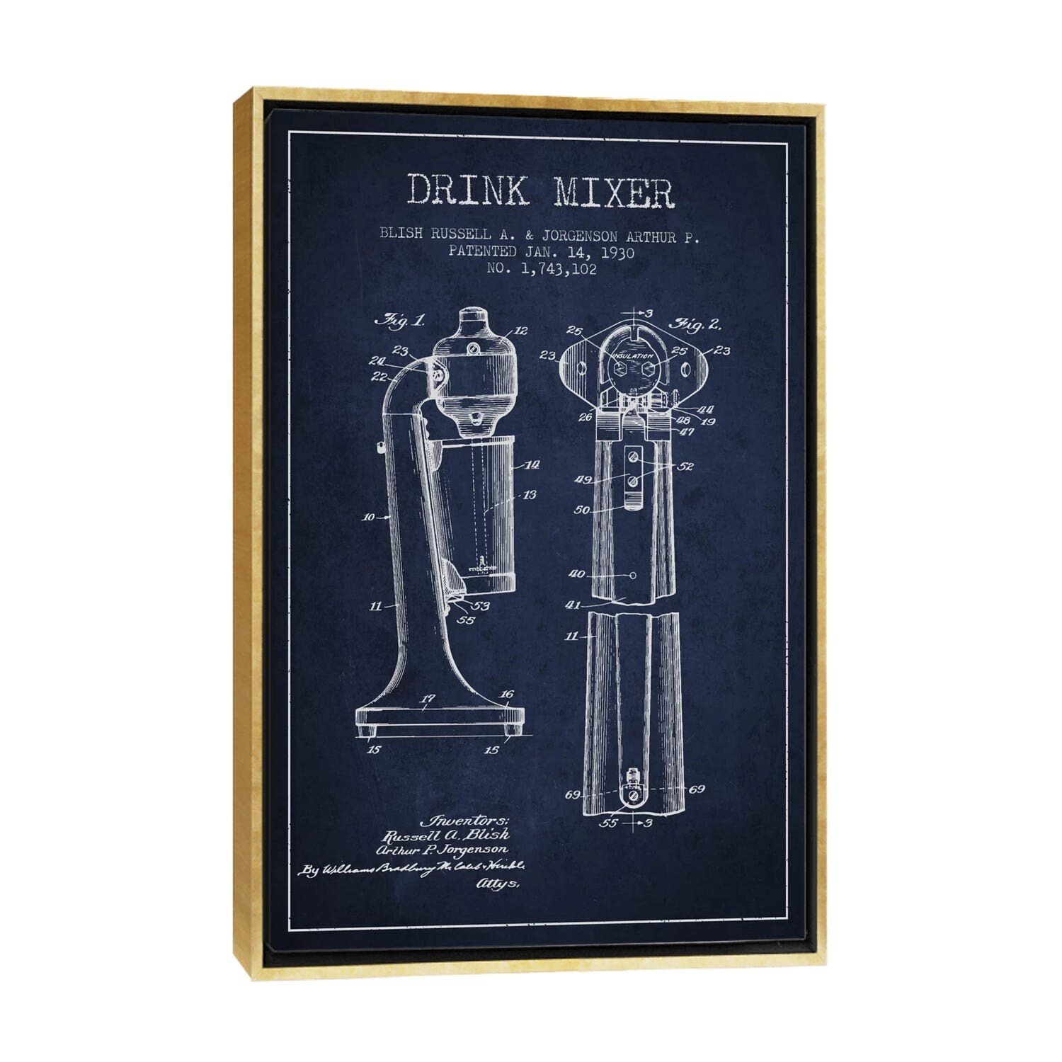 iCanvas "Drink Mixer Navy Blue Patent Blueprint" by Aged Pixel Framed