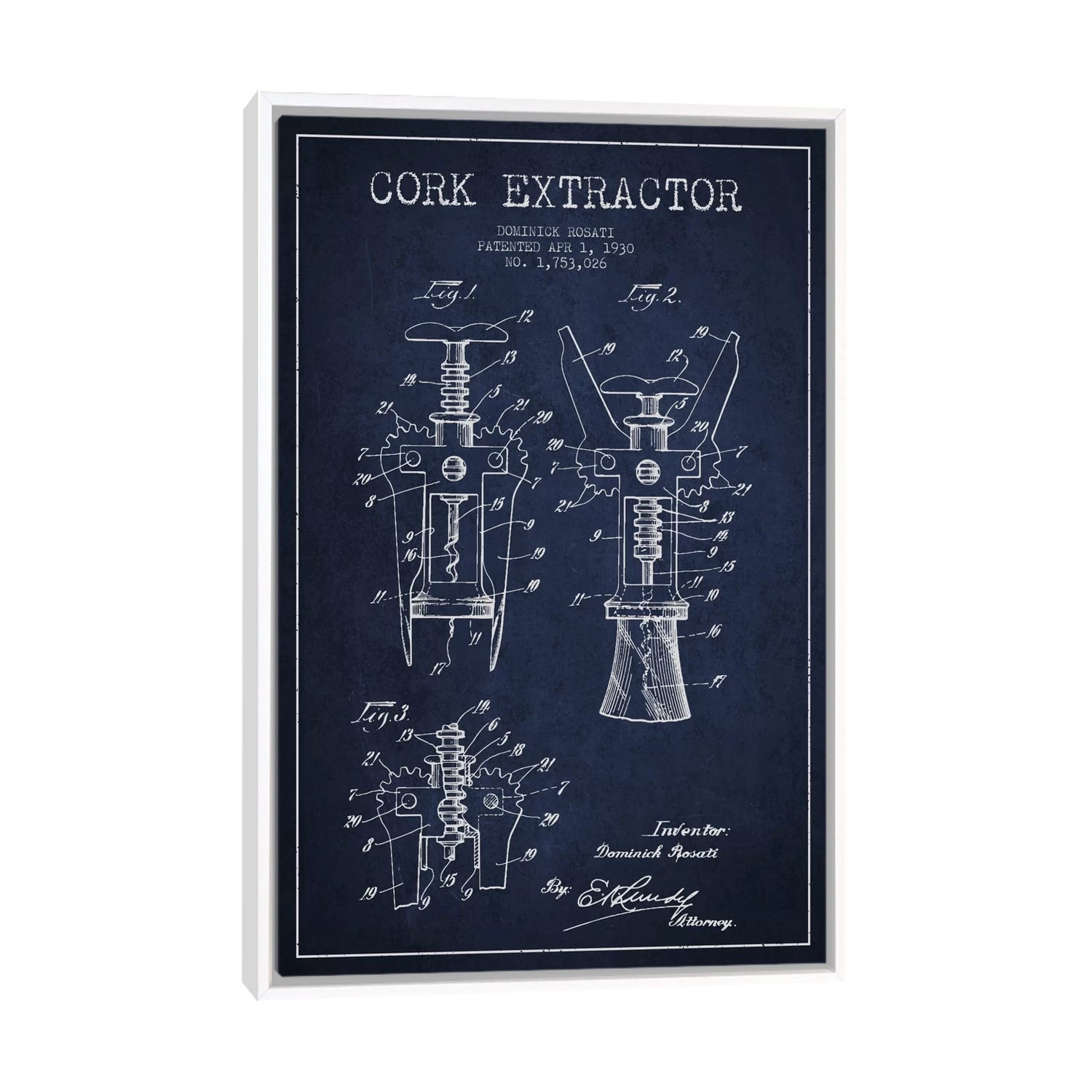 iCanvas "Corkscrew Navy Blue Patent Blueprint" by Aged Pixel Framed Canvas Print