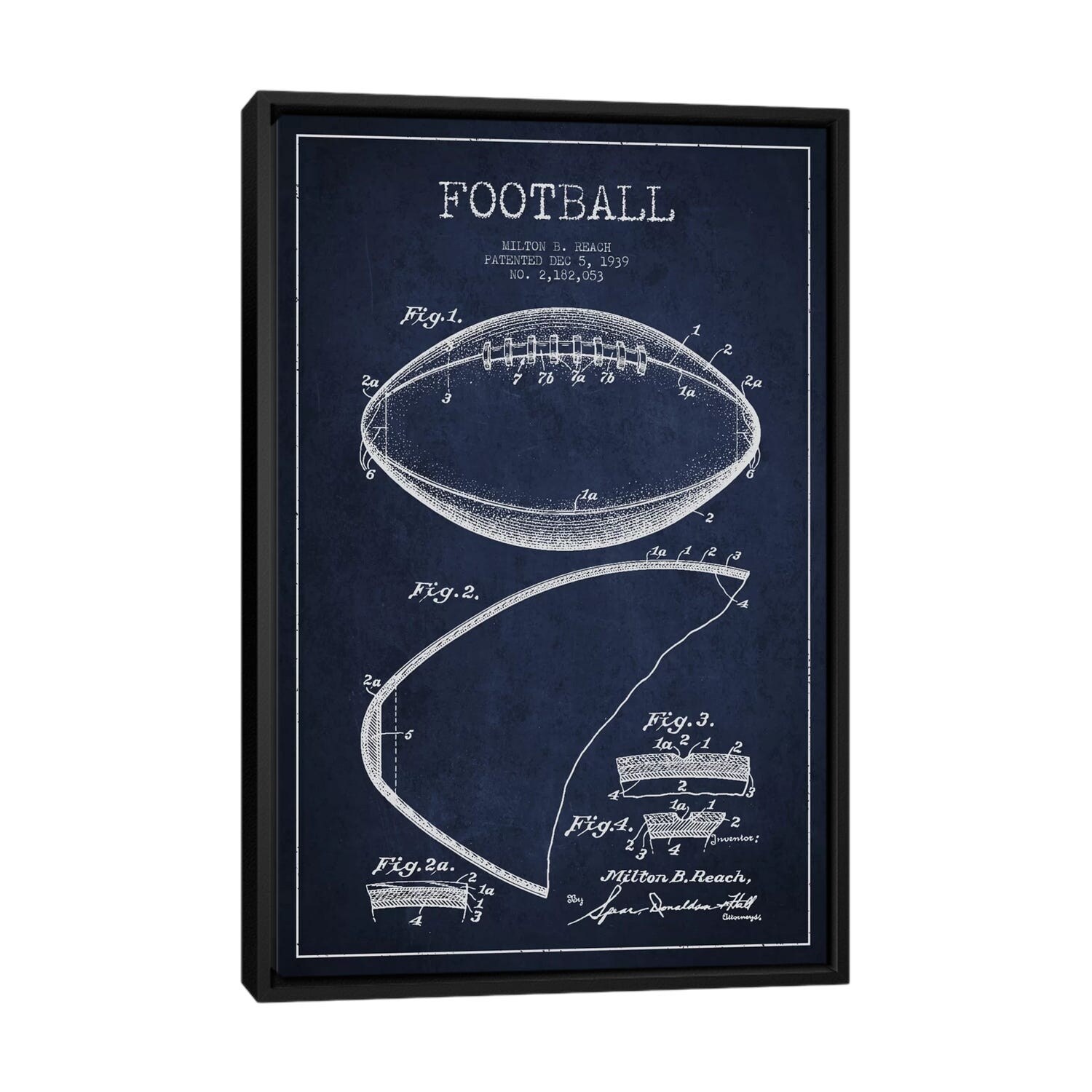 iCanvas "Football Navy Blue Patent Blueprint" by Aged Pixel Framed Canvas Print