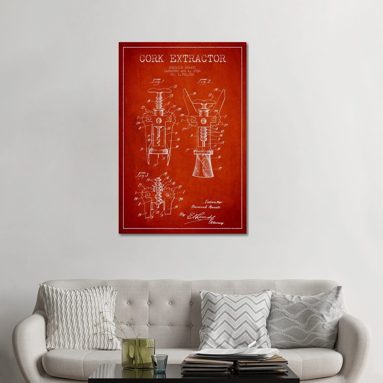 iCanvas "Corkscrew Red Patent Blueprint" by Aged Pixel Canvas Print