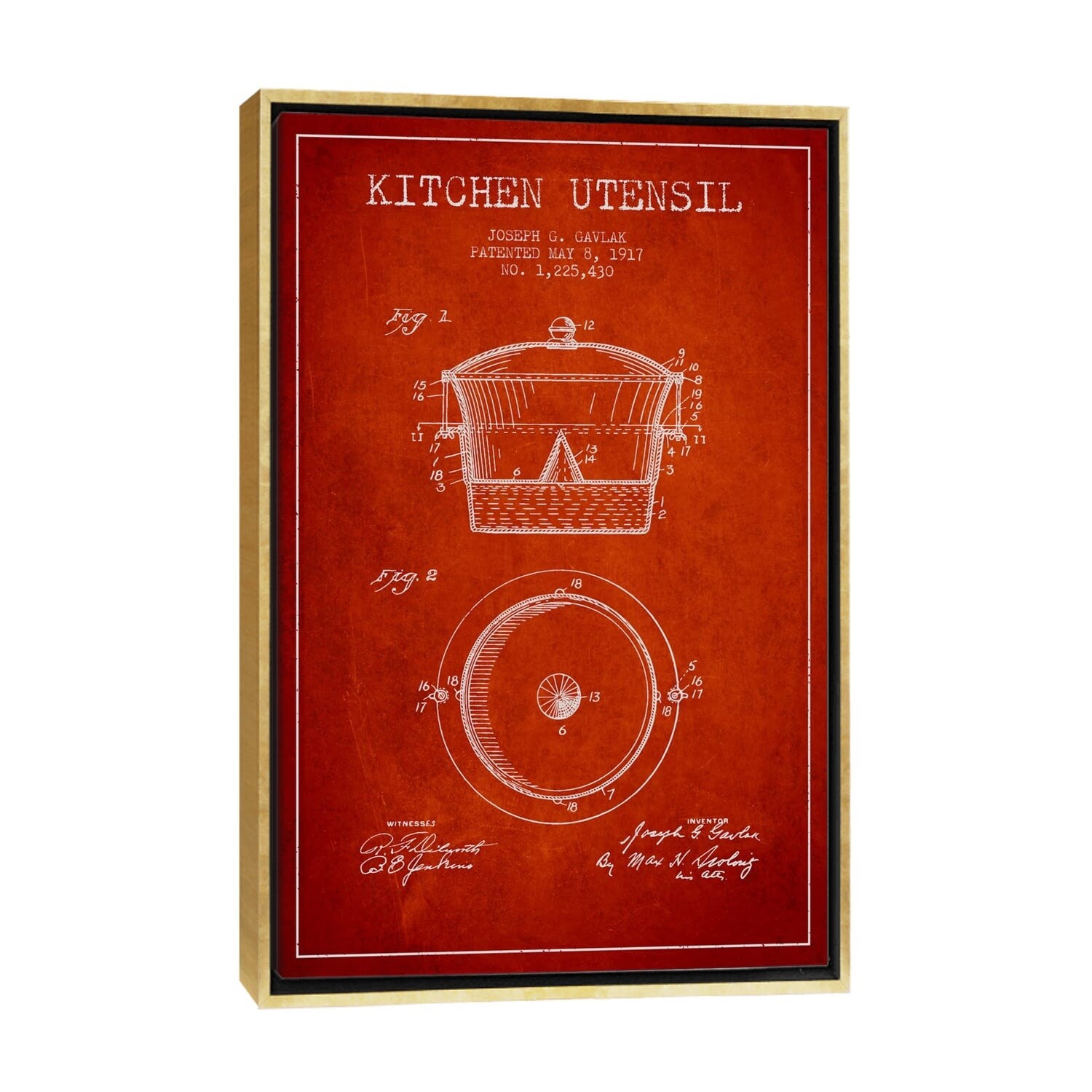 iCanvas "Kitchen Utensil Red Patent Blueprint" by Aged Pixel Framed Canvas Print