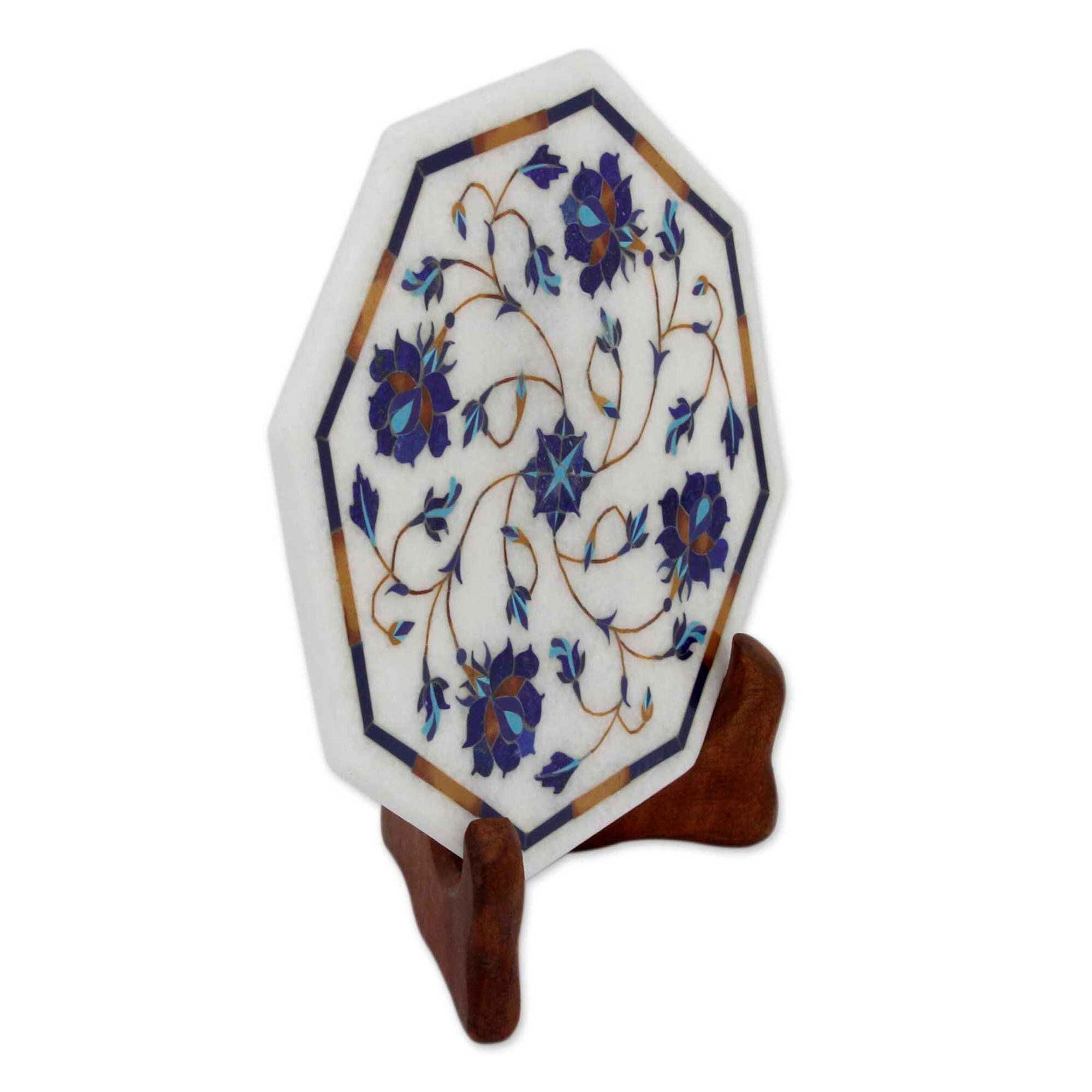 Novica Handmade Carousel of Roses Marble Inlay Decorative Plate