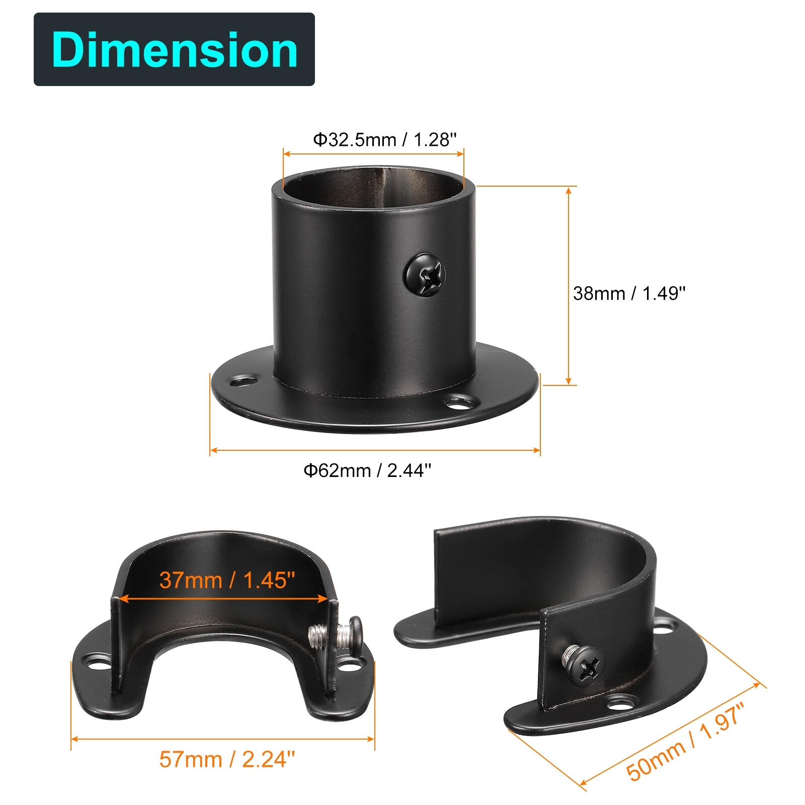 4x Stainless Steel Closet Pole Sockets Closet End Supports Flange Rod - Black