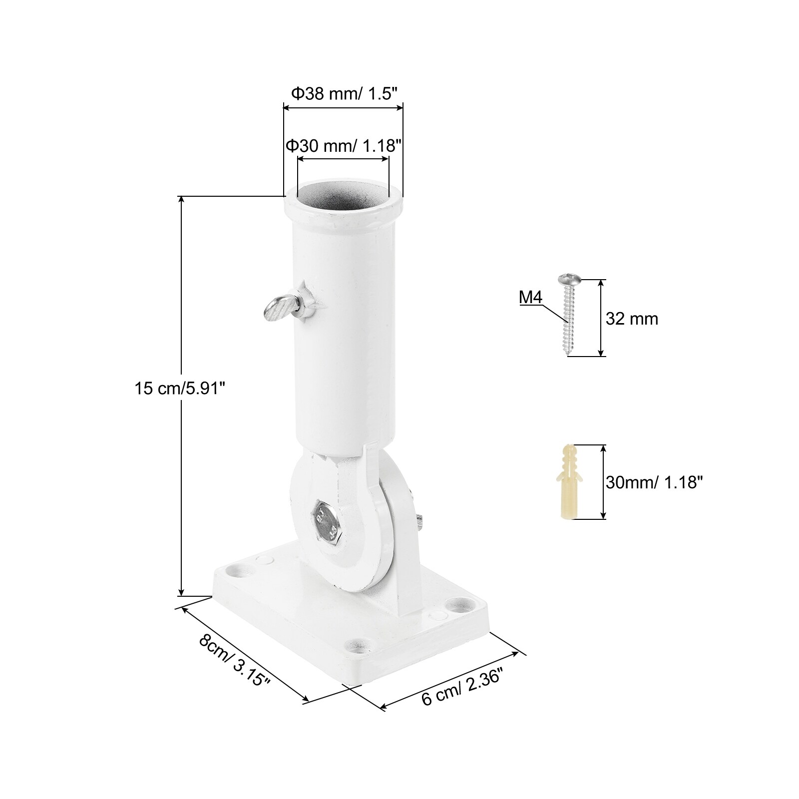 Adjustable Flag Pole Bracket, Aluminum Multi-Position Heavy Flagpole Holder Wall Mount for House Garden - White