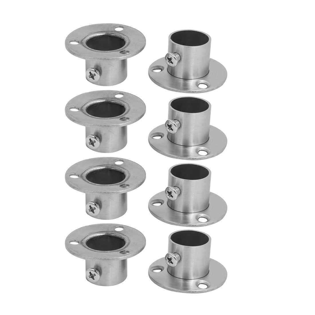 4 Pair Stainless Steel Closet Pole Socket Rob Support Flange Holder, 26mm Dia - Silver Tone