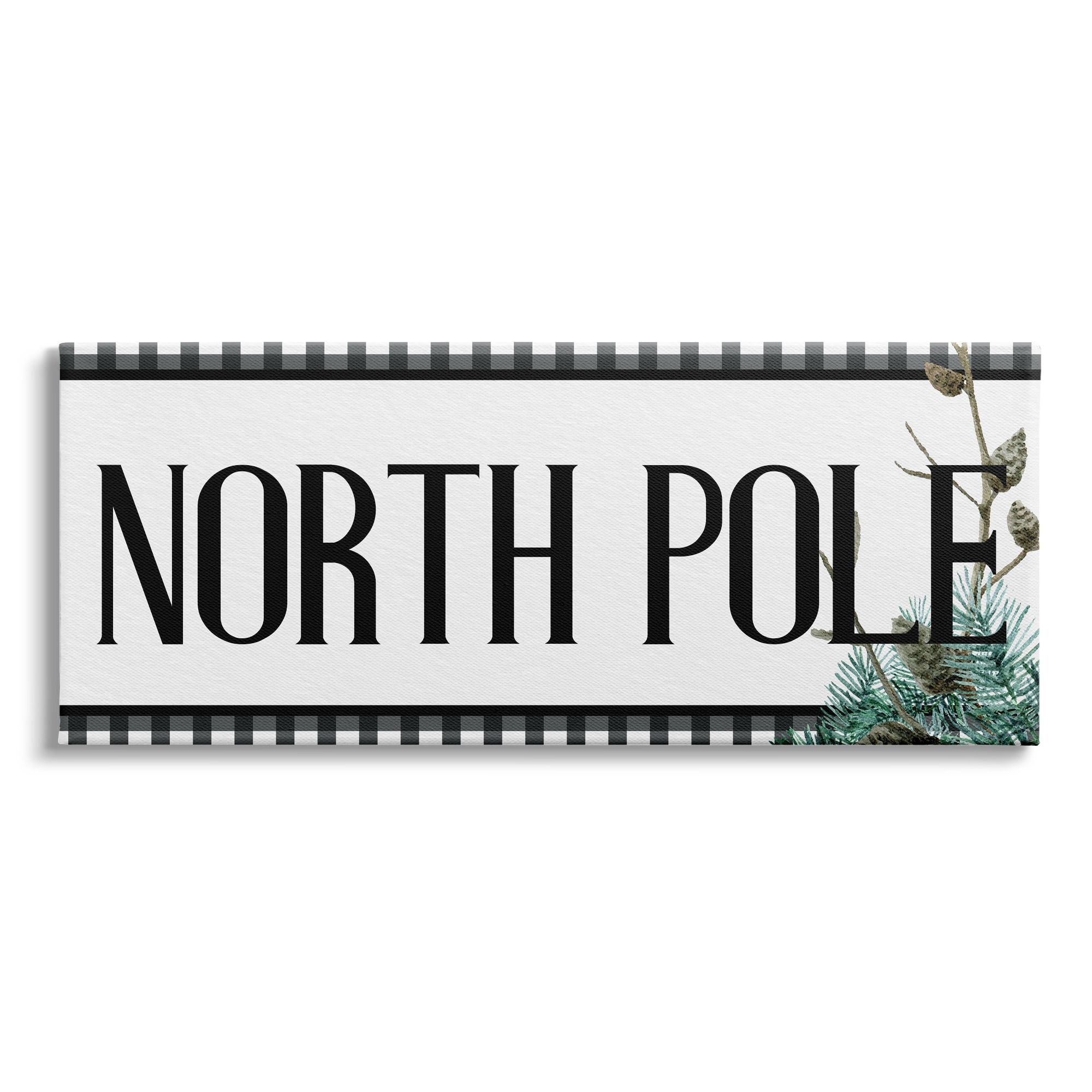 Stupell North Pole Typography Black Plaid Winter Pinecone Foliage Canvas Wall Art - White