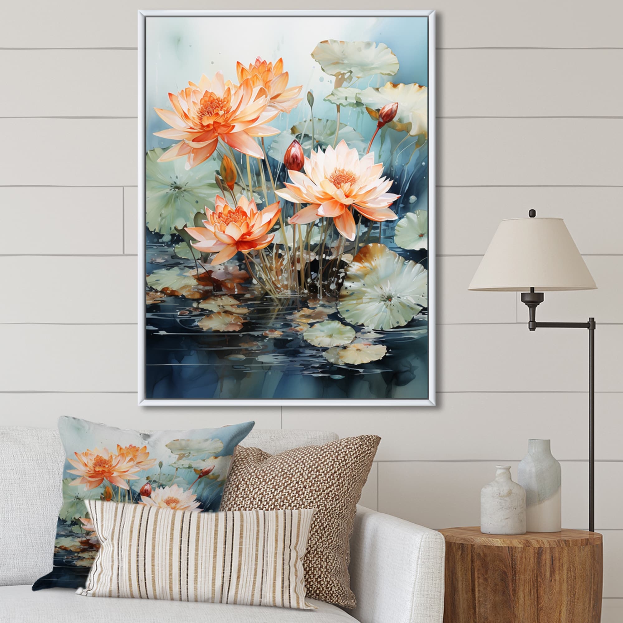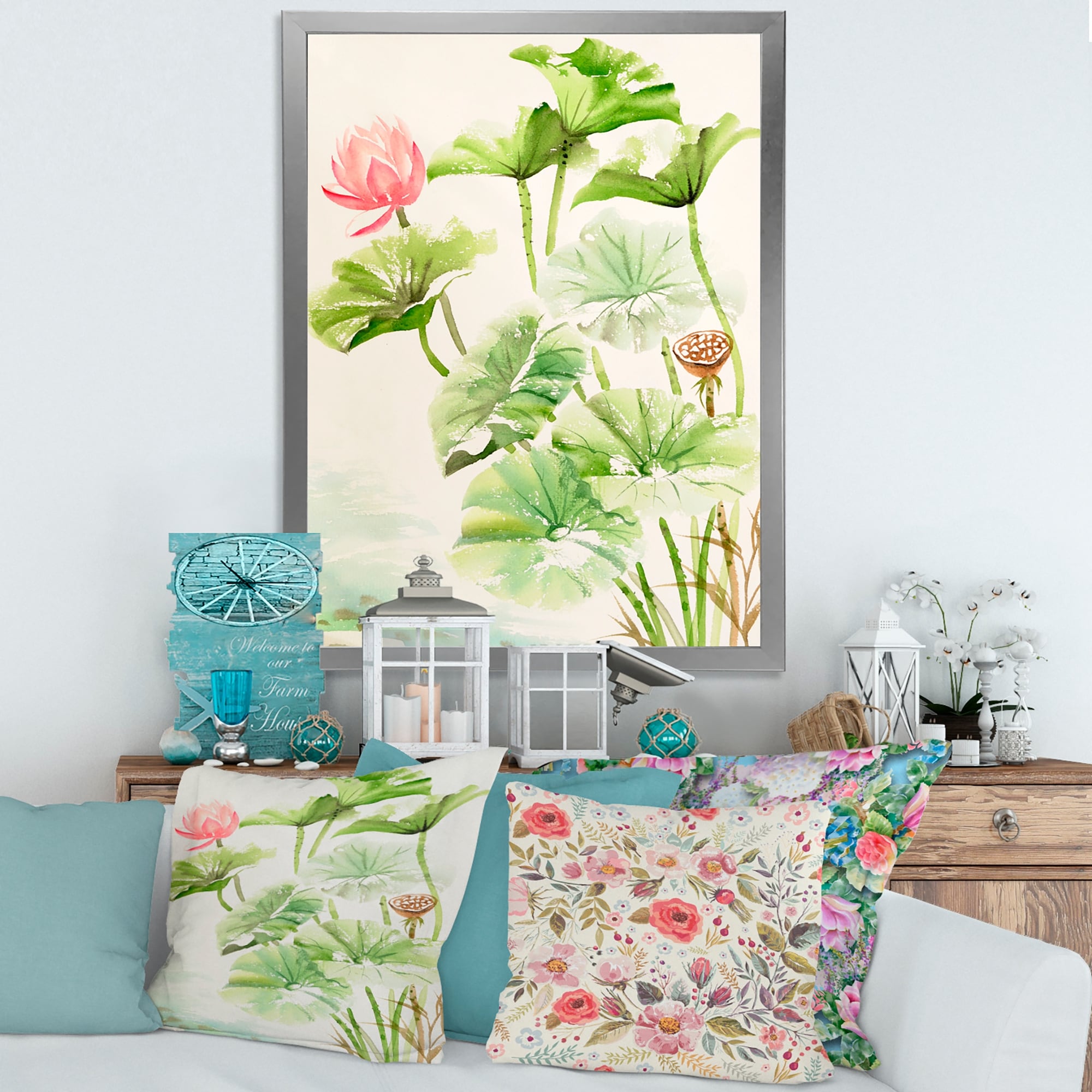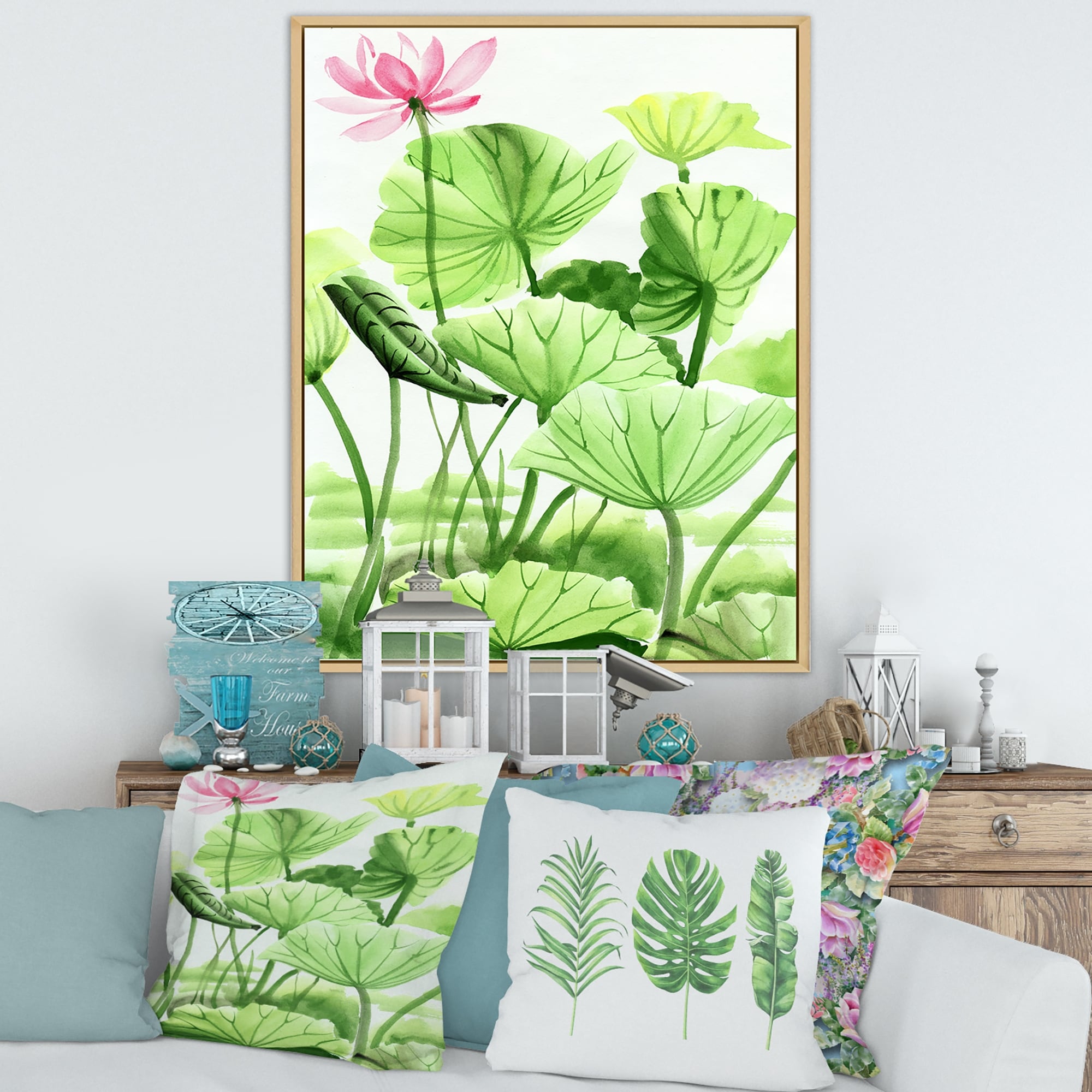 Designart "Vintage Lotus Leaves in the Pond" Traditional Framed Canvas Wall Art Print