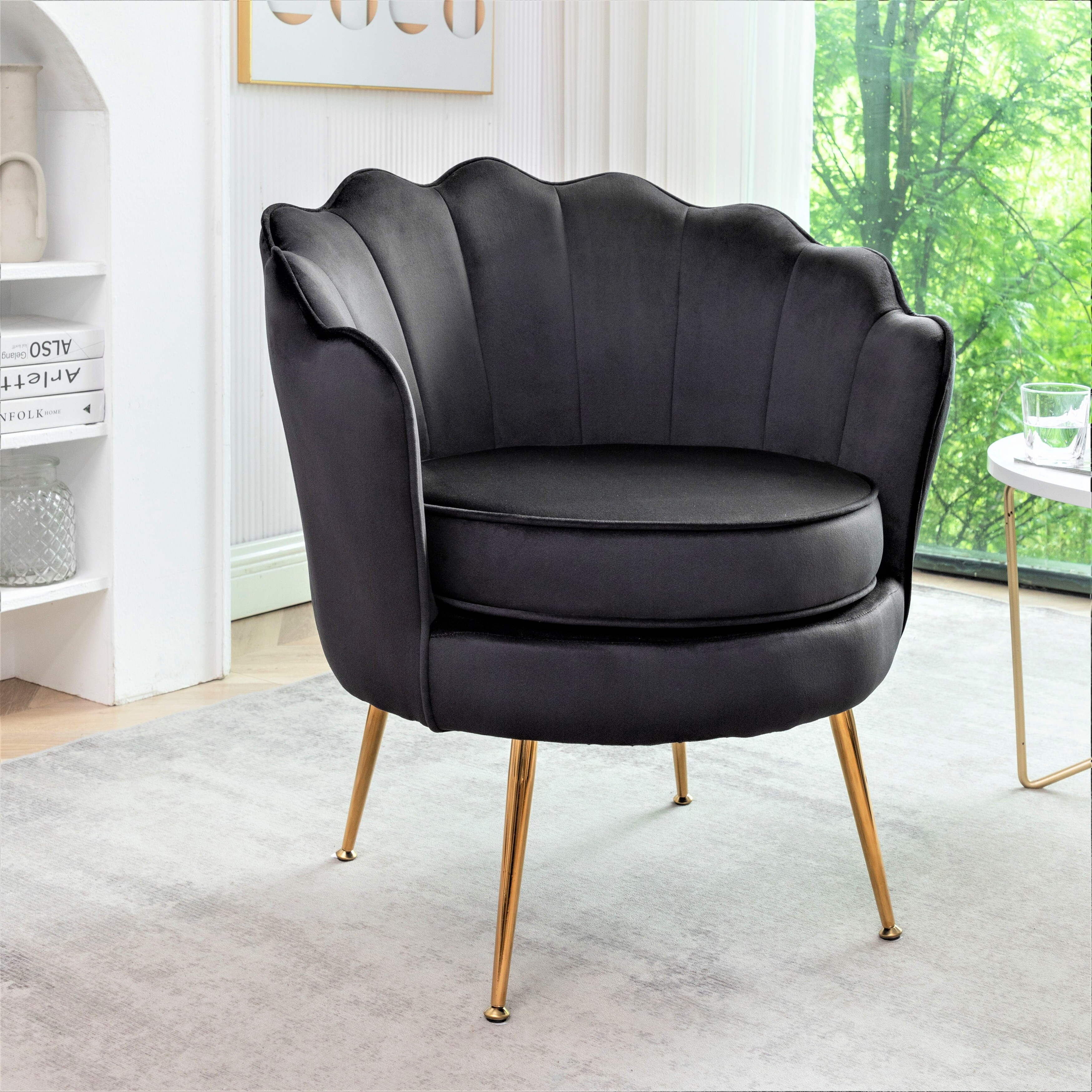 Us Pride Furniture Cavett 28.3" Wide Velvet Barrel Chair with Scalloped Backrest