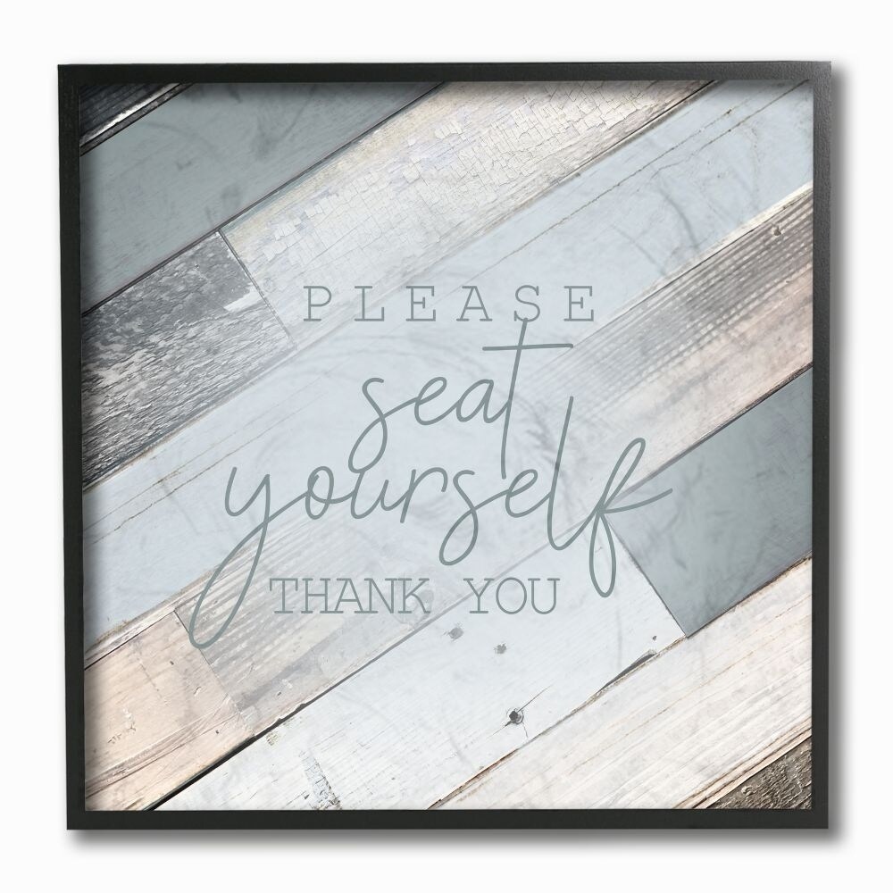 Stupell Please Seat Yourself Thank You Slate Blue Planked Wood Look Black Framed Art, 12x12, Proudly Made in USA - 12 x 12