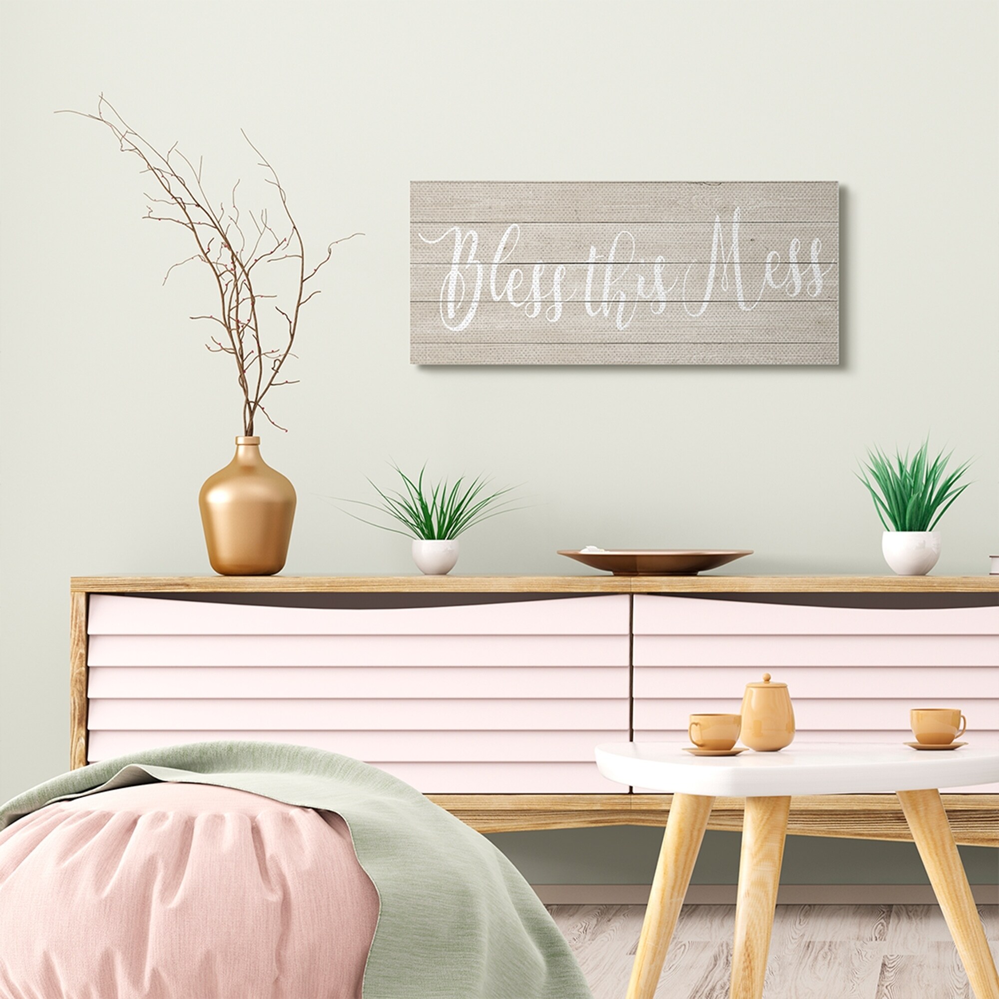 Stupell Industries Bless This Mess Family Home Inspirational Word Textured Wood Design,10x24, Proudly Made in USA - Multi-Color
