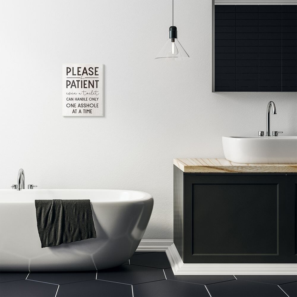Stupell Industries Please Be Patient Funny Bathroom Wood Texture Word Design Wood Wall Art, Proudly Made in USA
