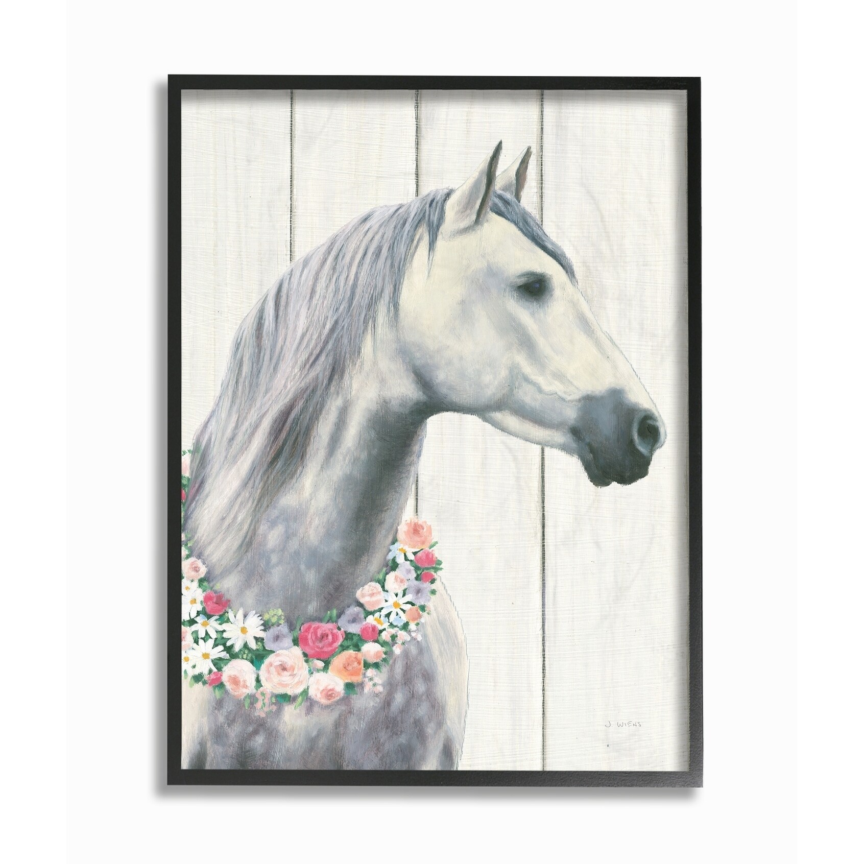 Stupell Industries Spirit Stallion Horse With Flower Wreath Black Framed, 24 x 30, Proudly Made in USA - 24 x 30