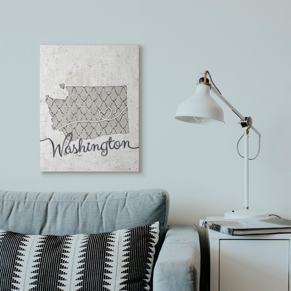 Stupell Industries Washington Patterned Grey US State Design Canvas Wall Art, Proudly Made in USA