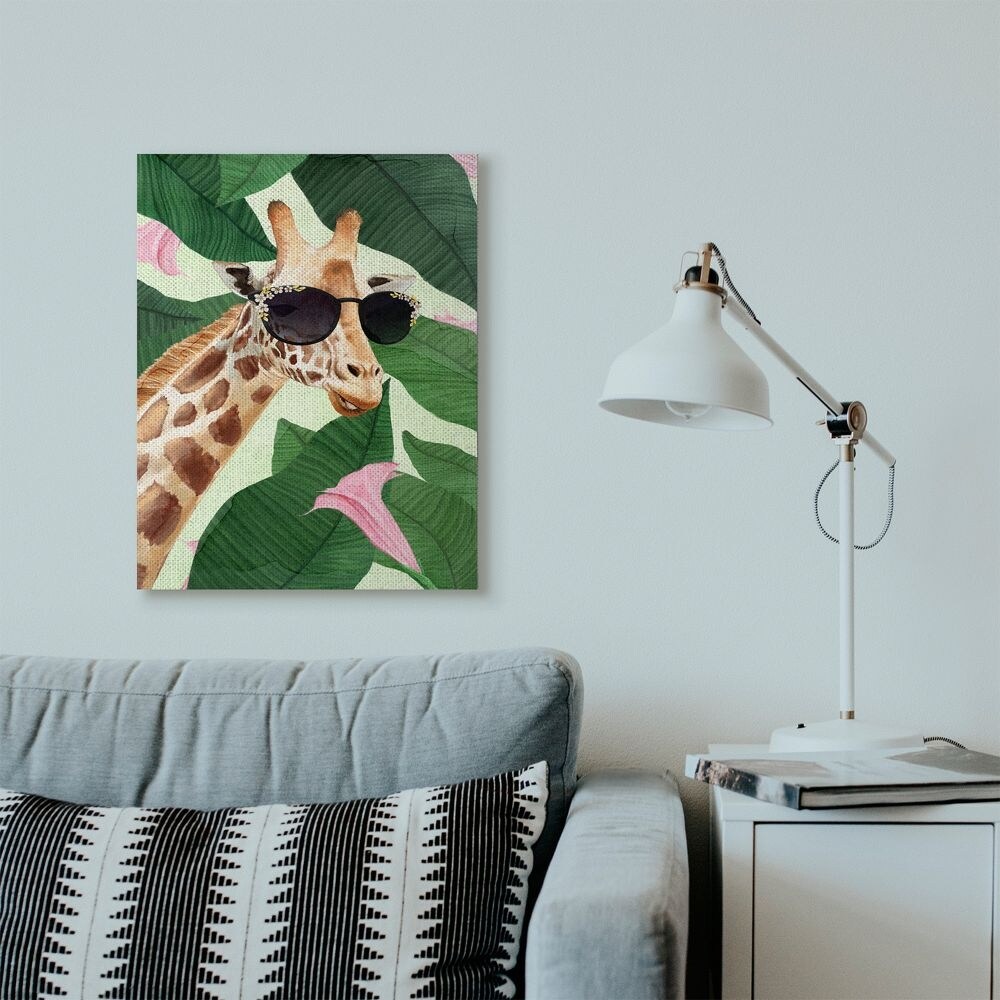 Stupell Industries Fashion Giraffe Funny Flower Tropical Painting Canvas Wall Art, Proudly Made in USA