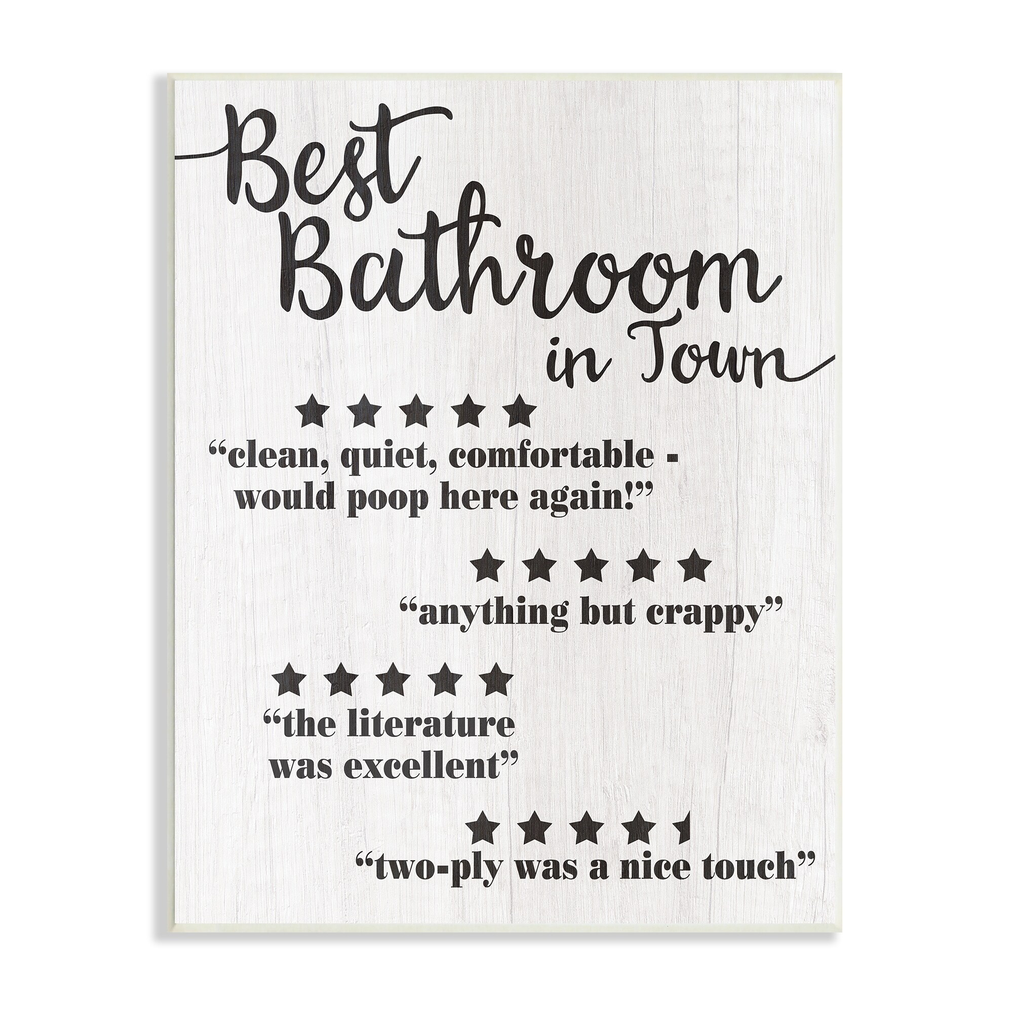 Stupell Five Star Bathroom Funny Word Black And White Textured Design,10x15, Proudly Made in USA