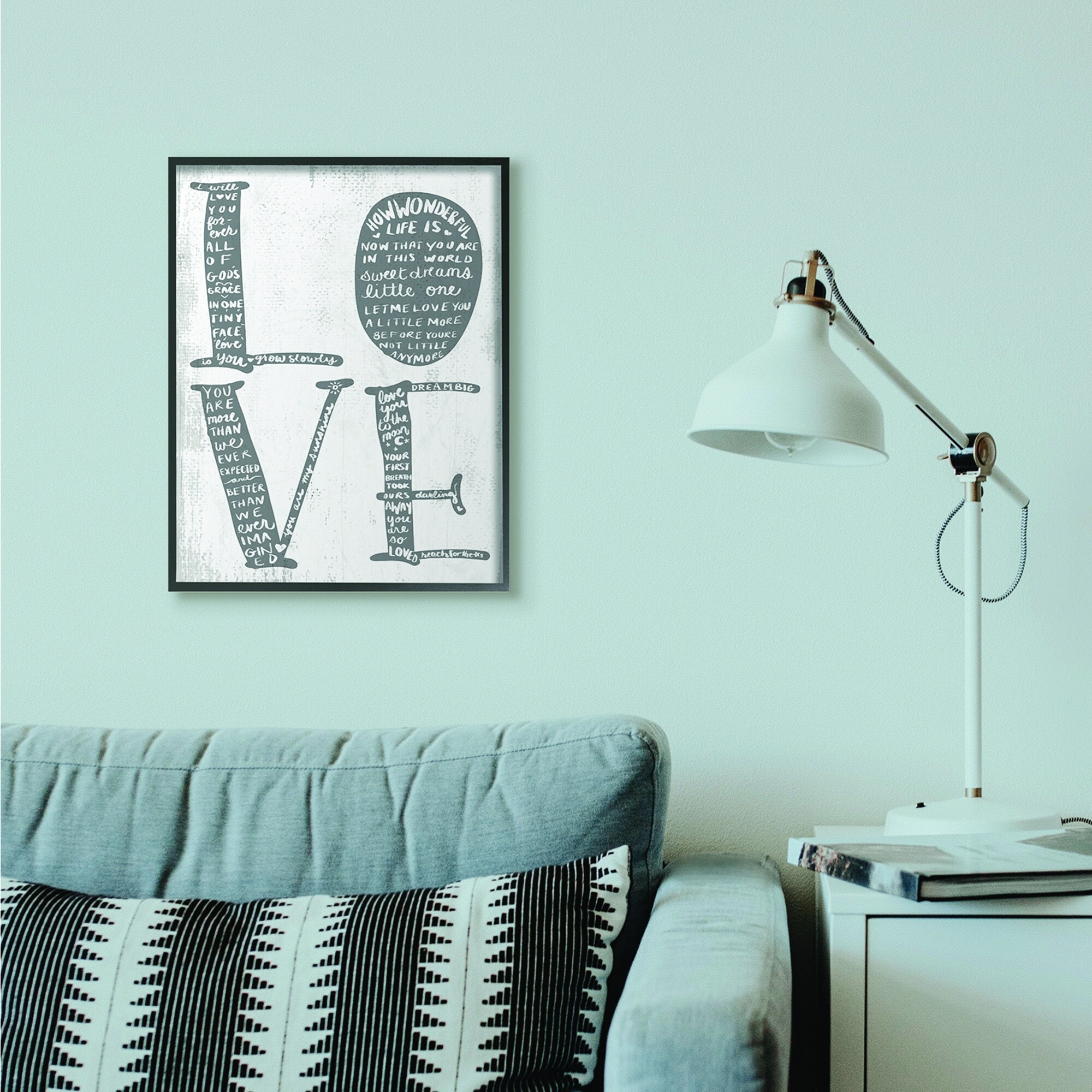 Stupell Industries Love Kids Family Home Paint Texture Neutral Grey Word Design Framed Wall Art, Proudly Made in USA