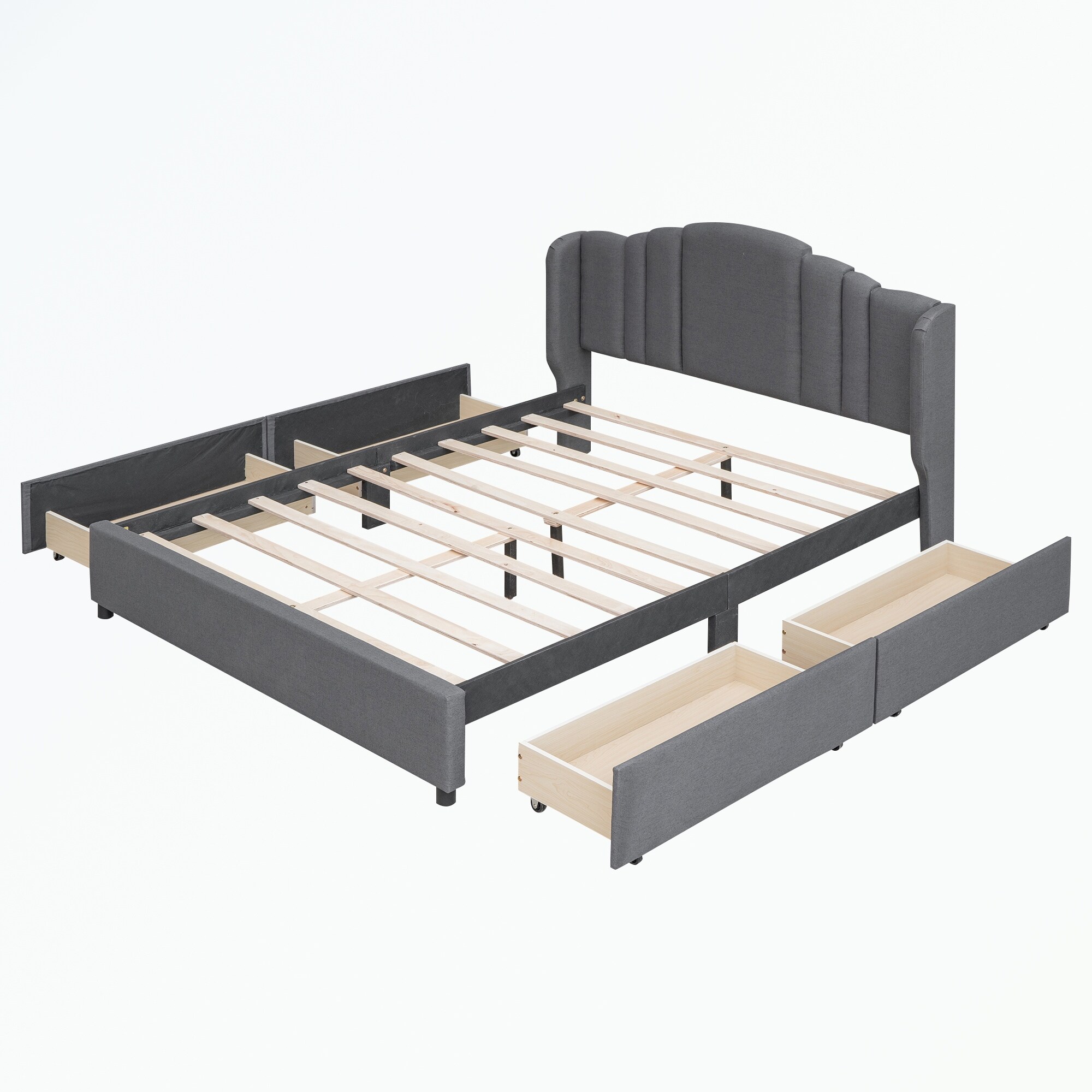 Wingback Tufted Upholstered Platform Bed with 4 Drawers, Queen