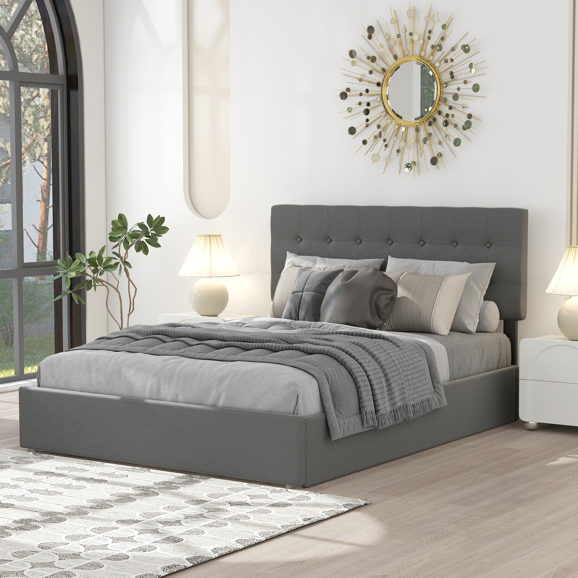 Upholstered Platform Bed with Button-tufted Headboard&Footboard, Underneath Storage, Queen Size, Gray