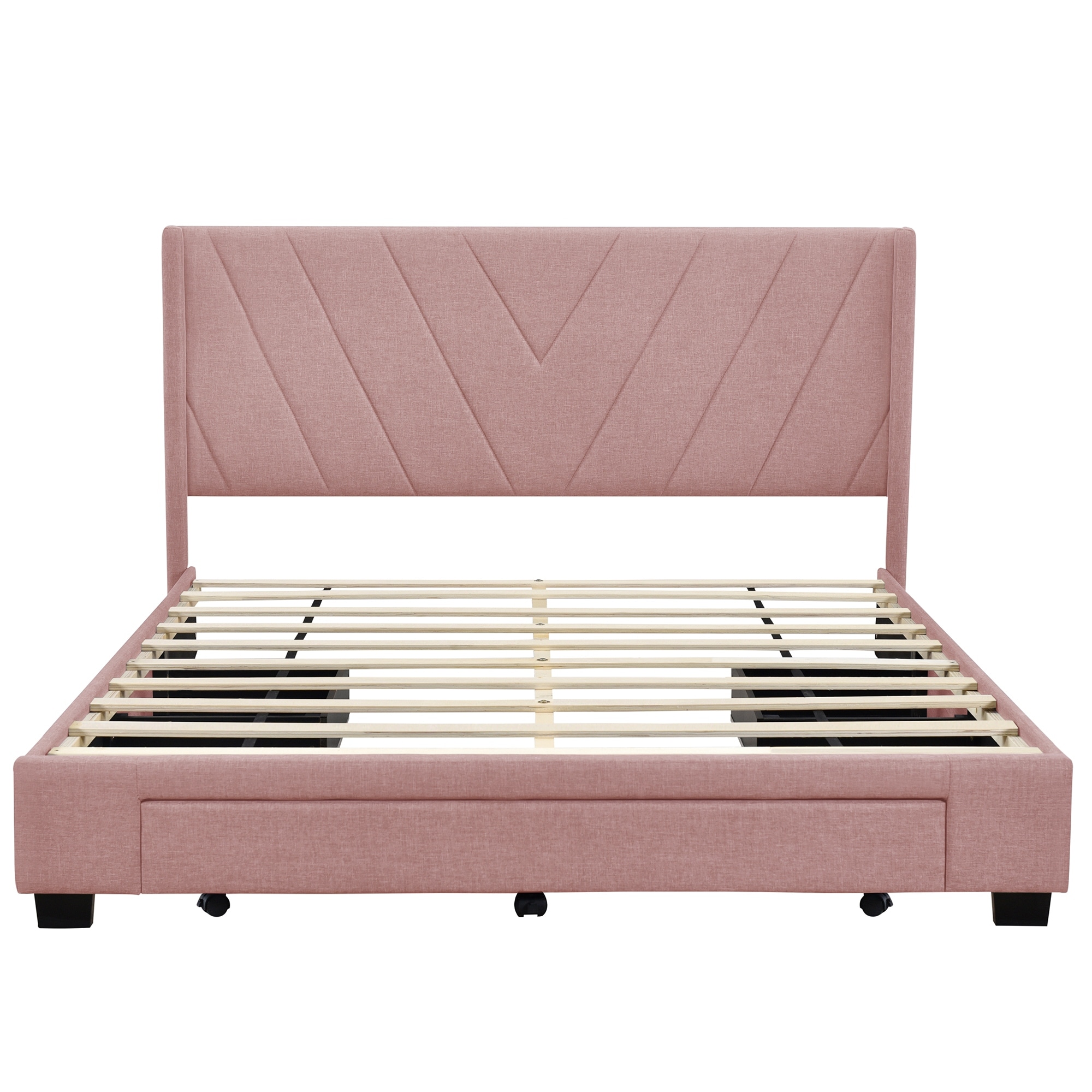 Queen Size Upholstered Platform Bed with Drawers and Edge