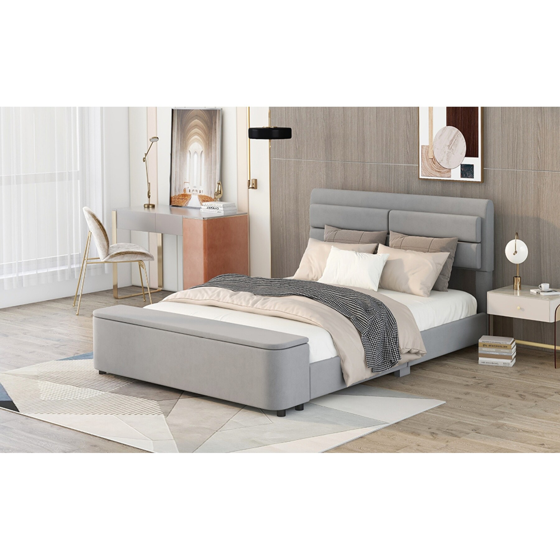 Modern Queen Size Upholstered Platform Bed with Underneath Storage