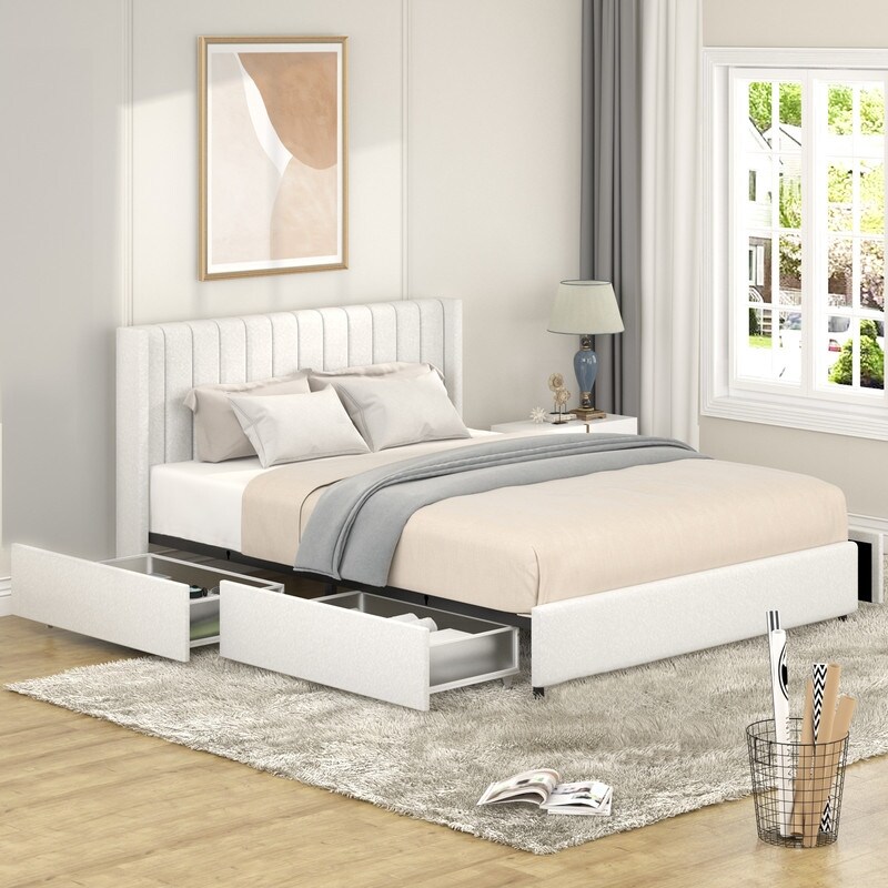 Upholstered Platform Bed with 4 Drawers, Queen Size