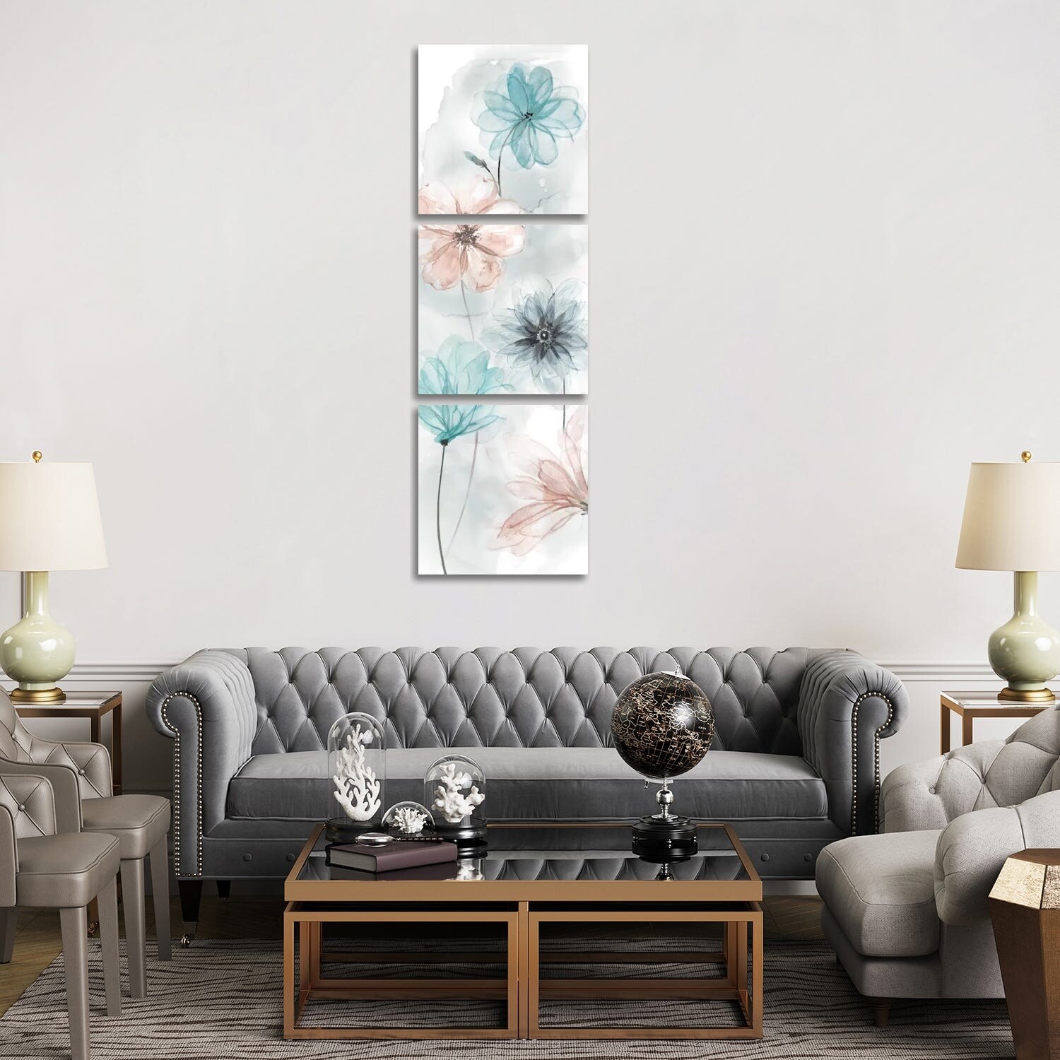 "Spring Rain New York Neutral Crop" Print on Floating Canvas Set of 3