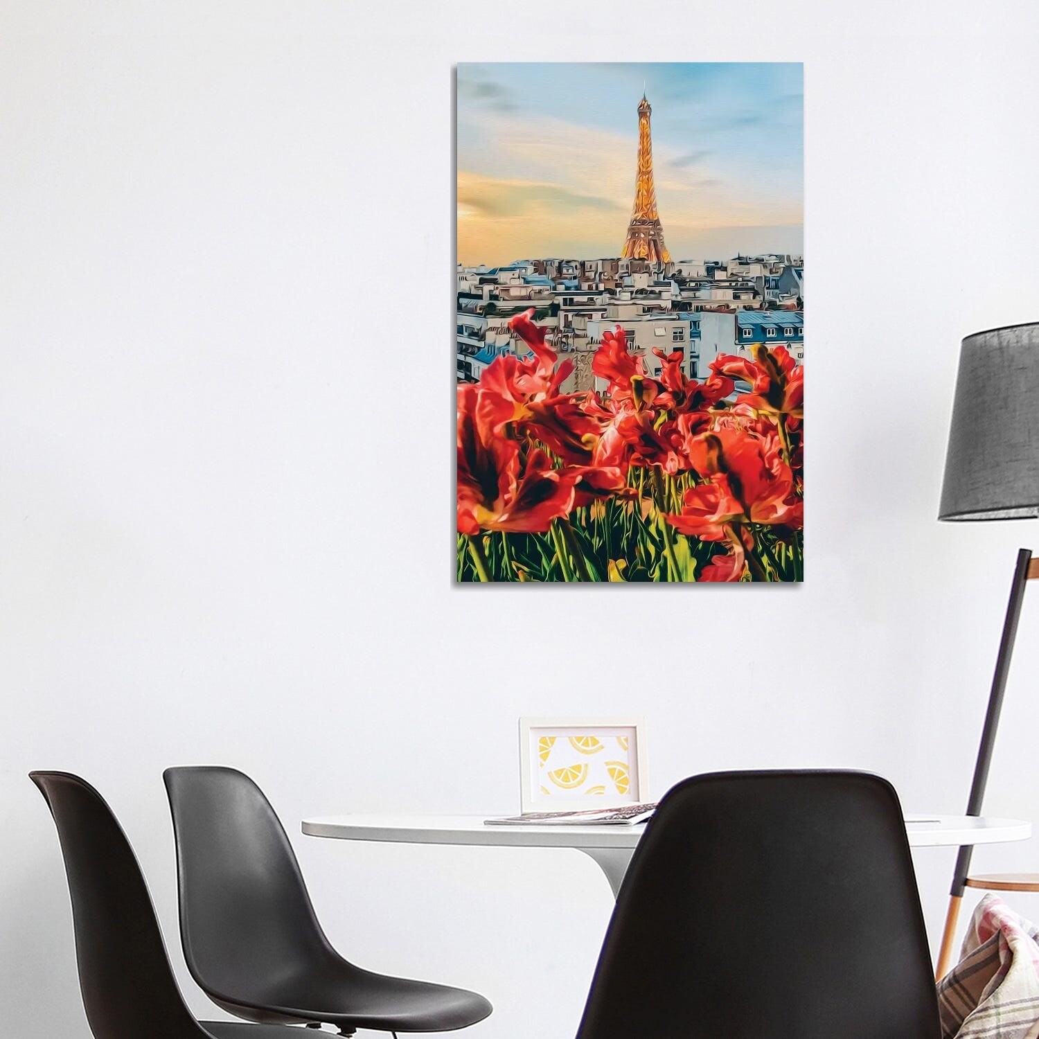 iCanvas "Red Tulips in the Background of the Eiffel Tower" by Ievgeniia Bidiuk Canvas Print