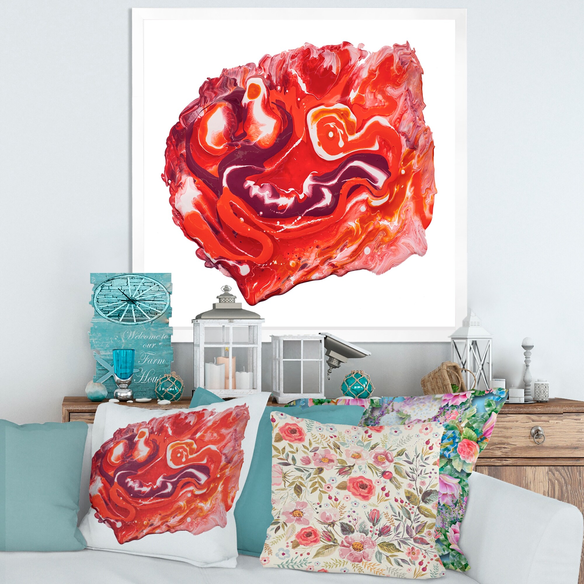 Sea Foam II -Framed Print w/glass-Cherry Red