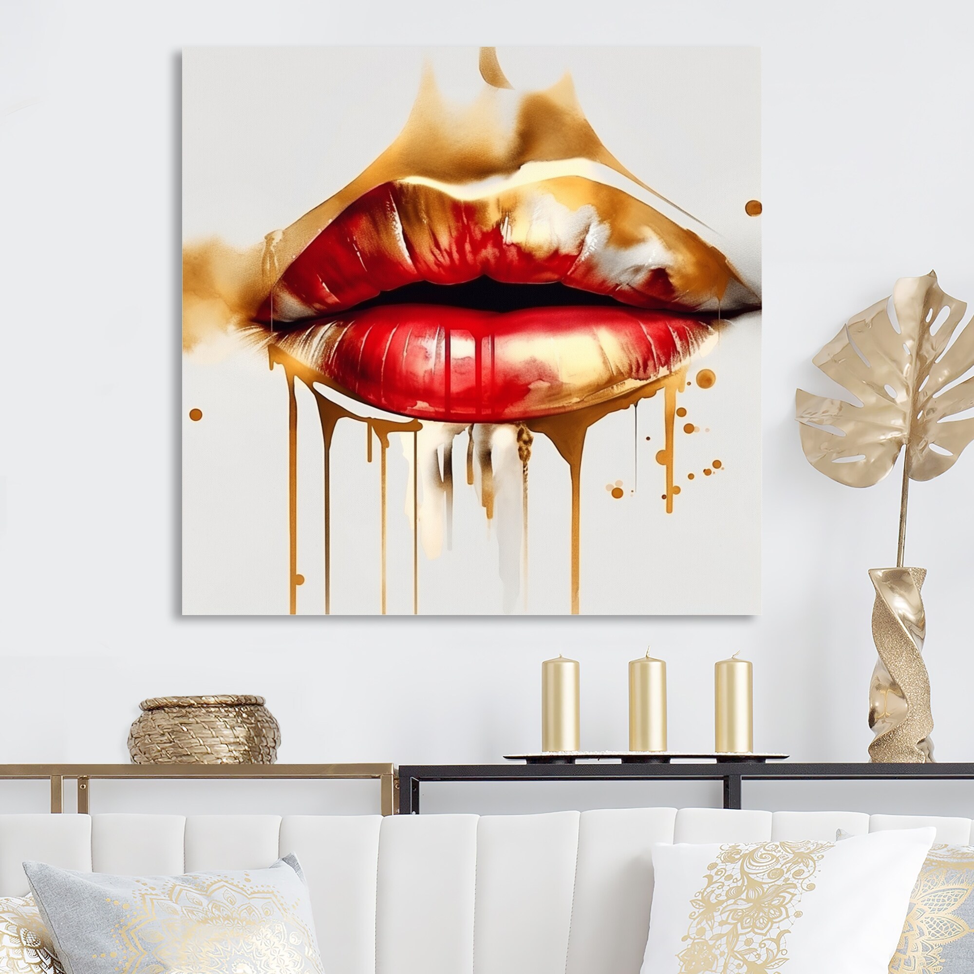 Designart "Golden Red Lips of Luxury II" Fashion Metal Wall Art