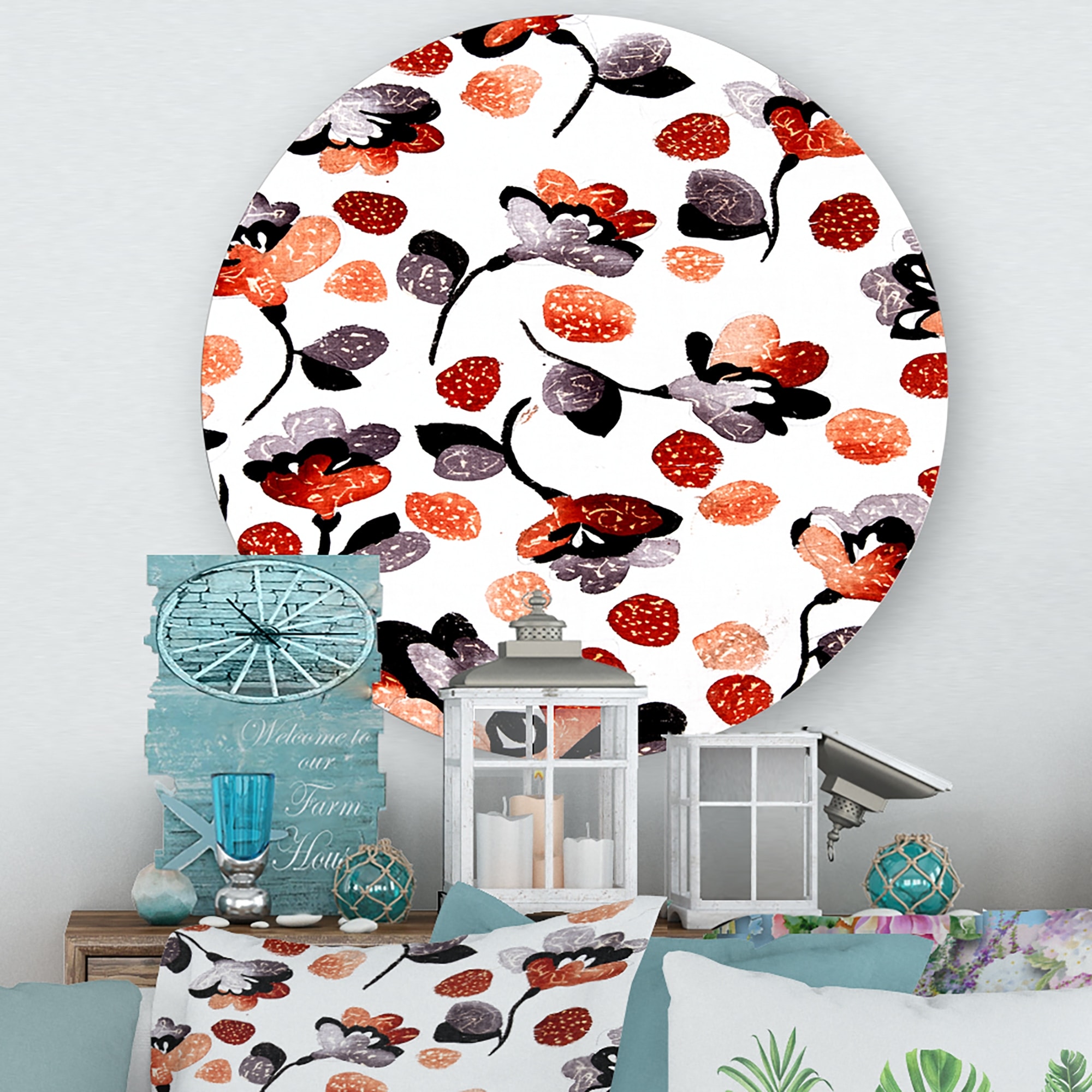 Designart 'Modern Flower in Blue Red and Orange' Bohemian & Eclectic Metal Circle Wall Art