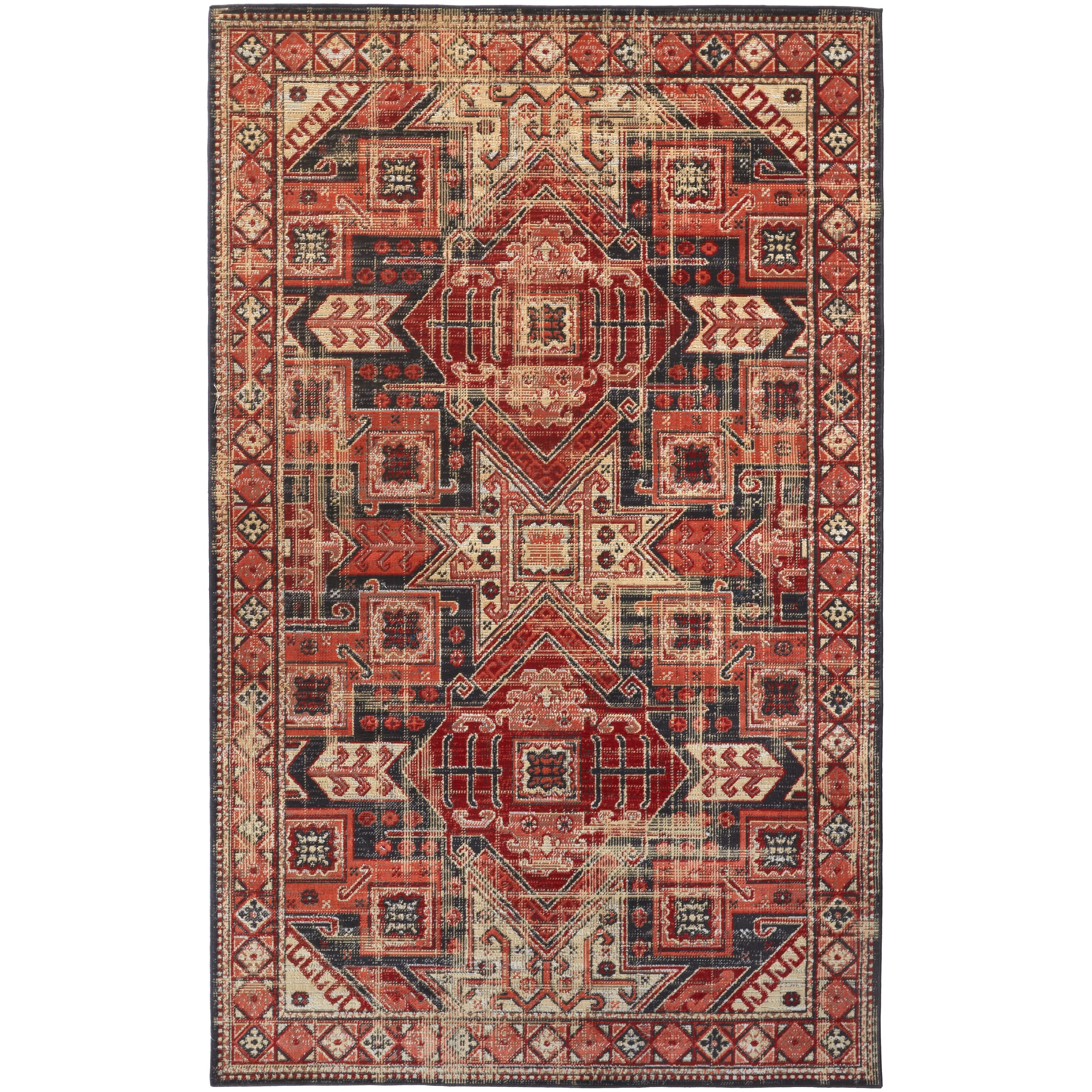 Kezia Vintage Style Tribal Kazak Rug, Ochre Red/Charcaol Gray