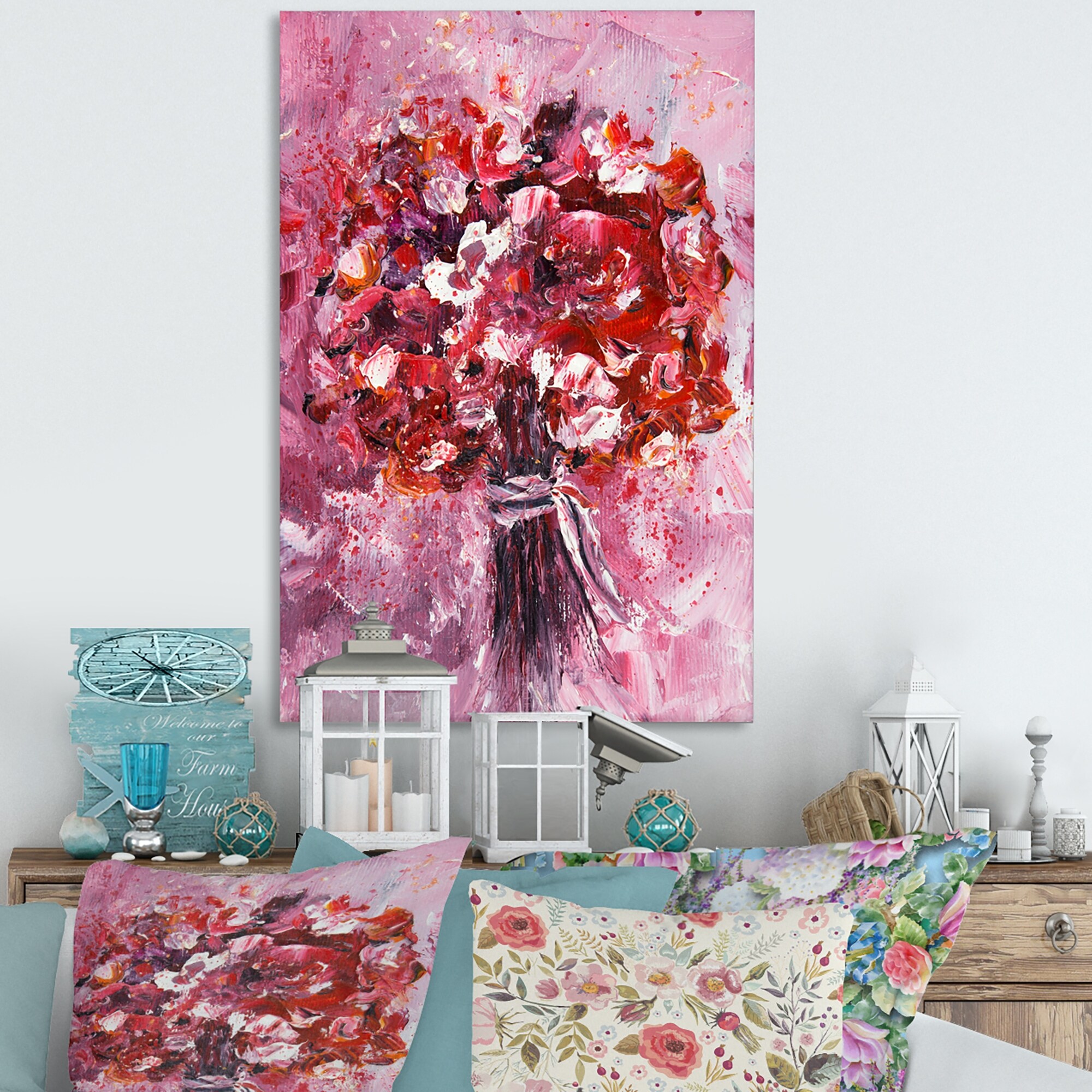 Designart "Red And Pink Cottage Flower Bouquet" Farmhouse Canvas Wall Decor